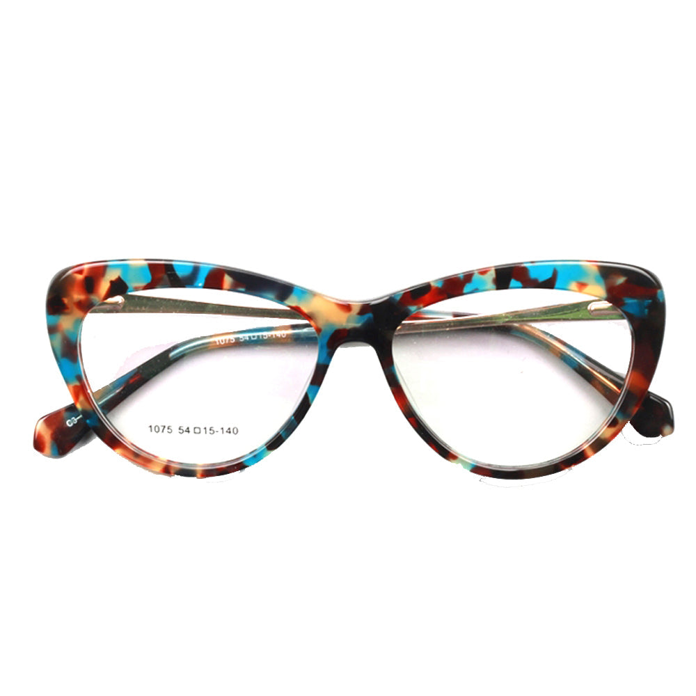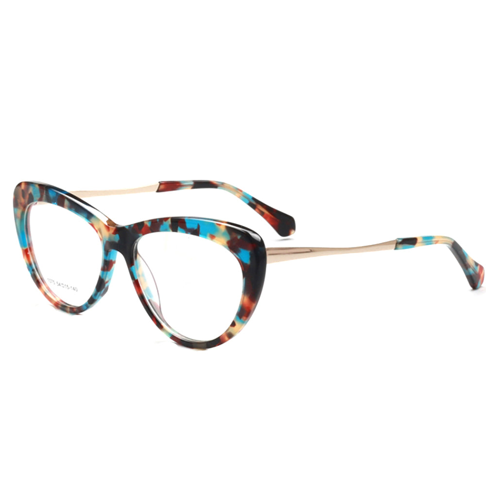 These cat eye eyeglasses are made of acetate and metal material. They come in black, tortoise, blue, multicolor, and brown color options. The cat eye design makes these most suitable for women.