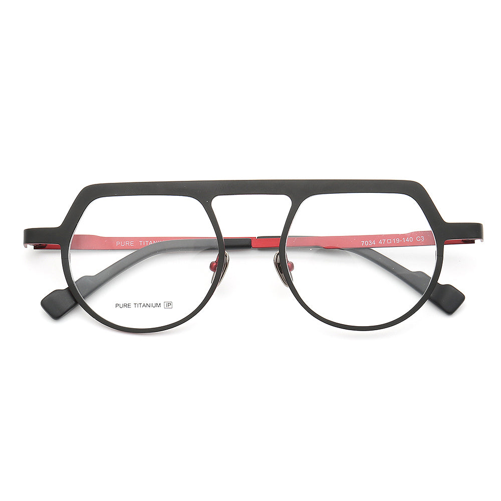 These vintage eyeglasses are made of pure titanium material. They come in silver, brown, navy, and black/red color options. The unisex design allows these glasses to be worn by both men and women.