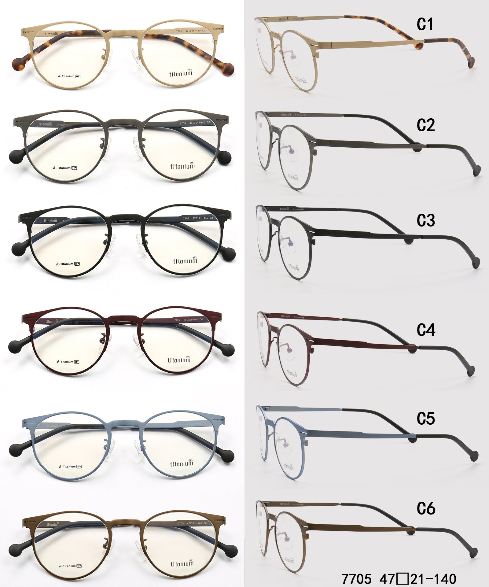 These round eyeglass frames are made of pure titanium material. They come in gold, gunmetal, black, coffee, blue and bronze color options. The classic, retro design allows these glasses to be worn by both men and women.
