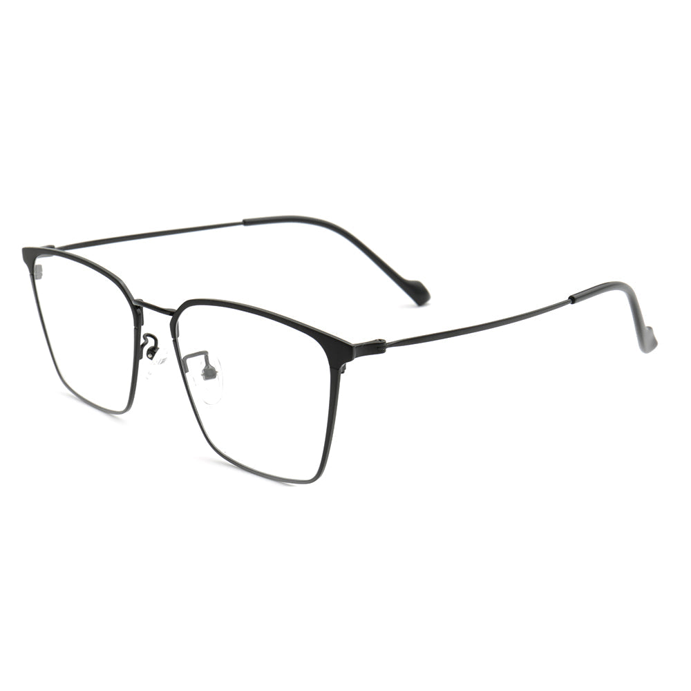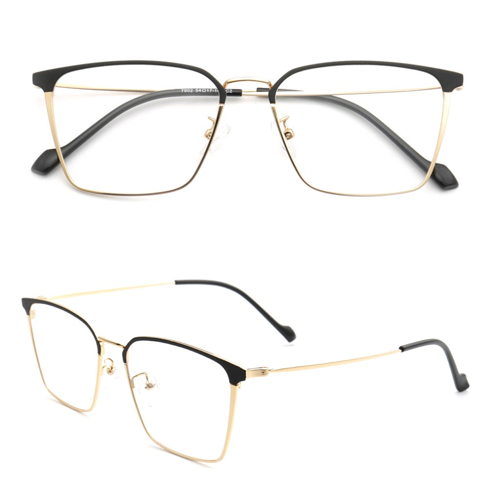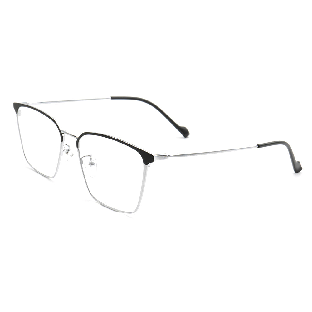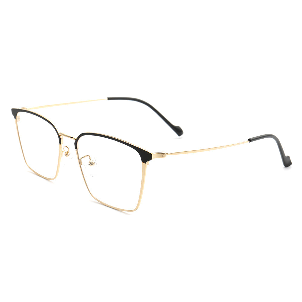 These square eyeglasses are made of lightweight, durable metal material. They come in black, black/gold, black/silver, and black/gunmetal color options. The sleek modern design allows these glasses to be worn by both men and women.