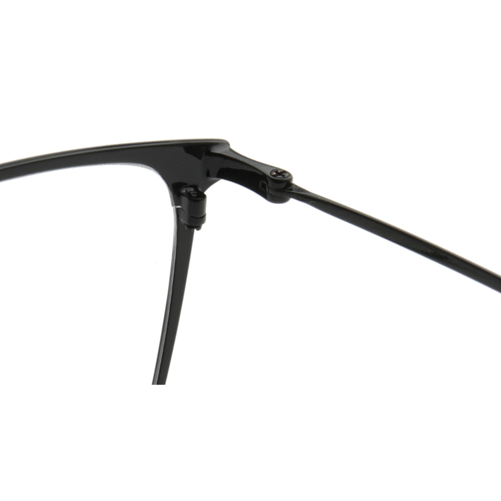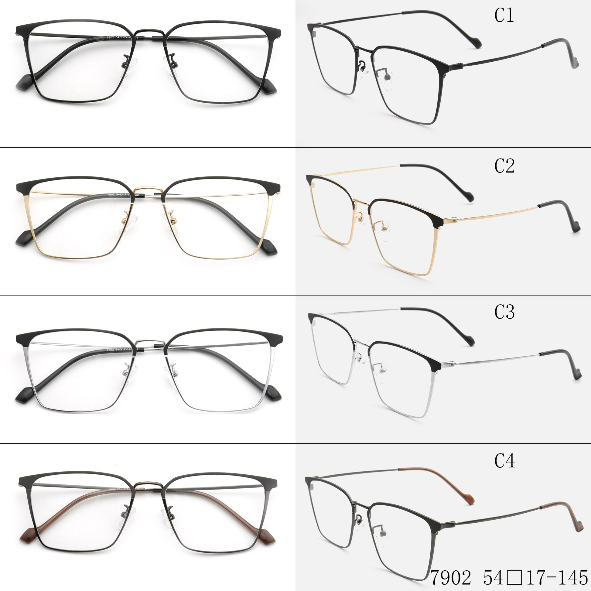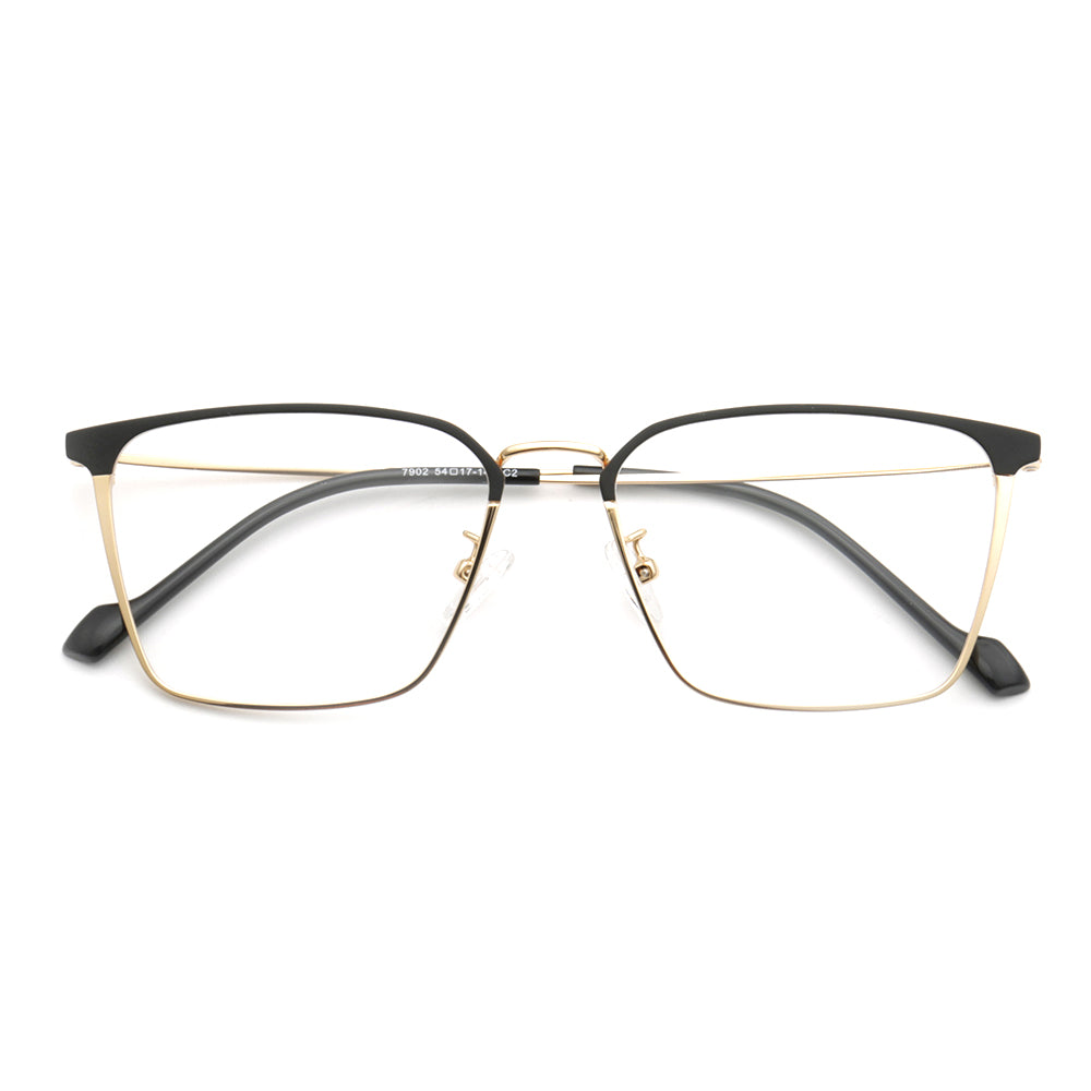 These square eyeglasses are made of lightweight, durable metal material. They come in black, black/gold, black/silver, and black/gunmetal color options. The sleek modern design allows these glasses to be worn by both men and women.