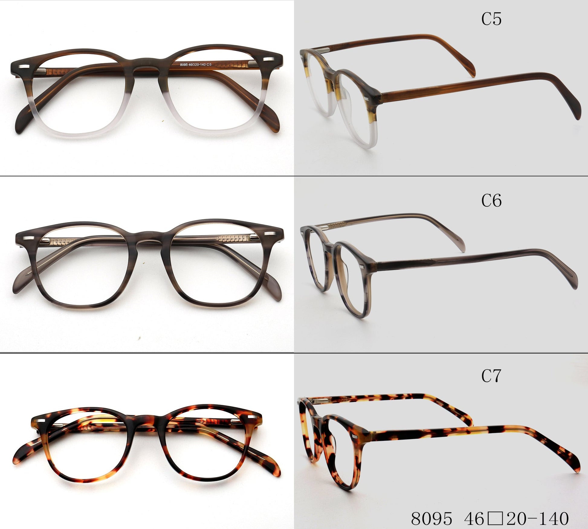 These round eyeglasses are made of acetate material. They come in black, brown, brown/clear, leopard print and tortoise color options. The modern design allows these glasses to be worn by both men and women.