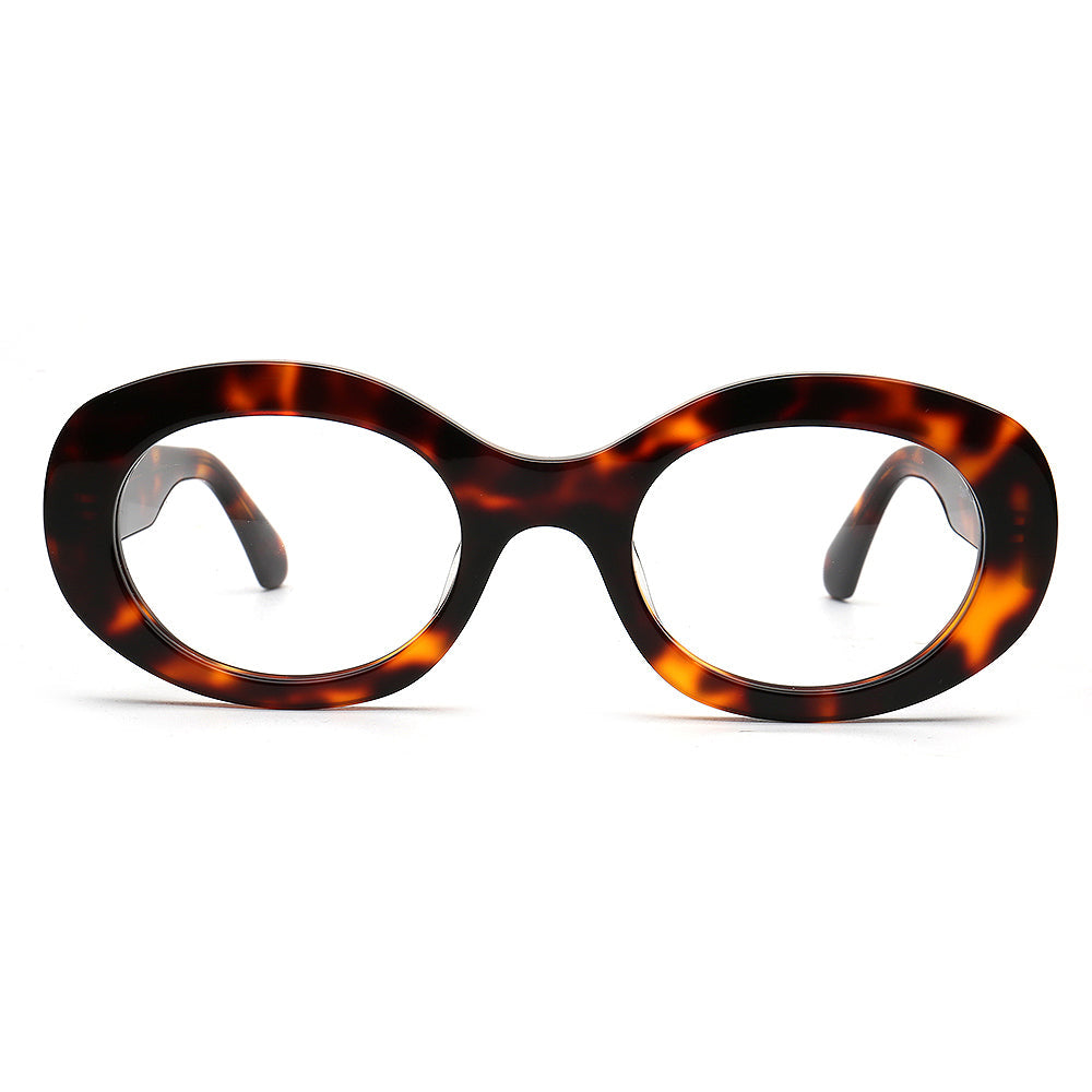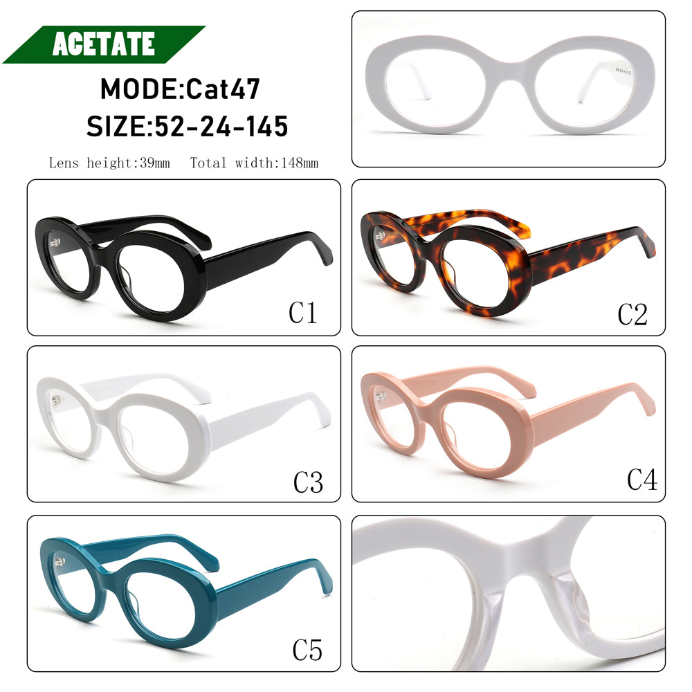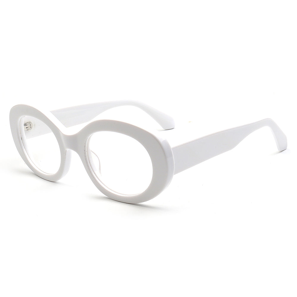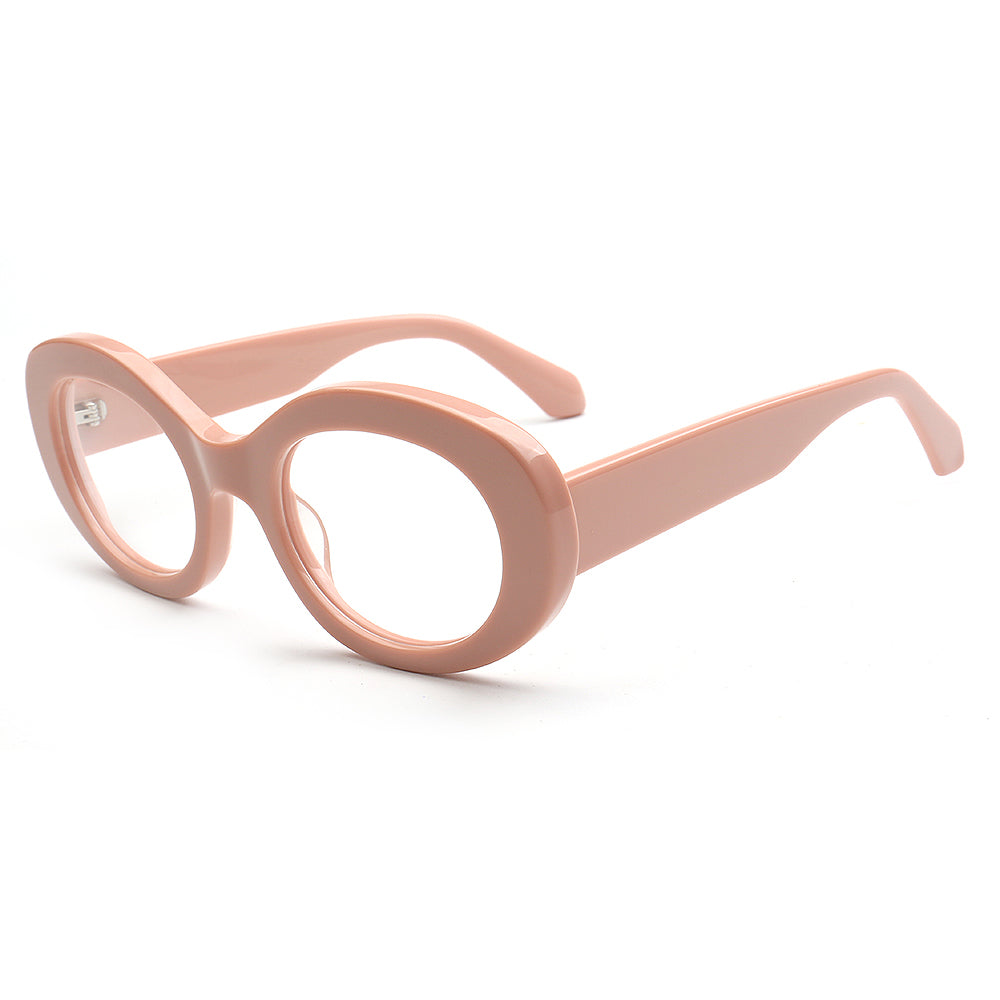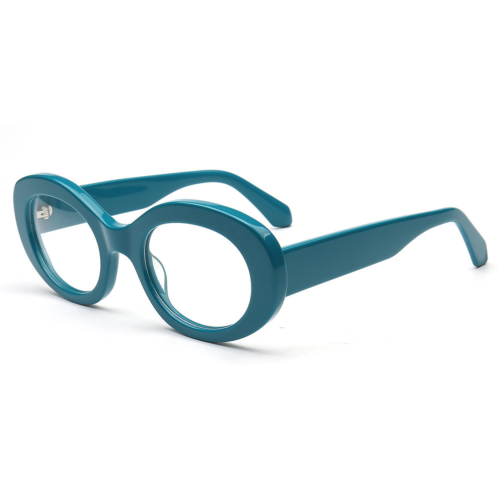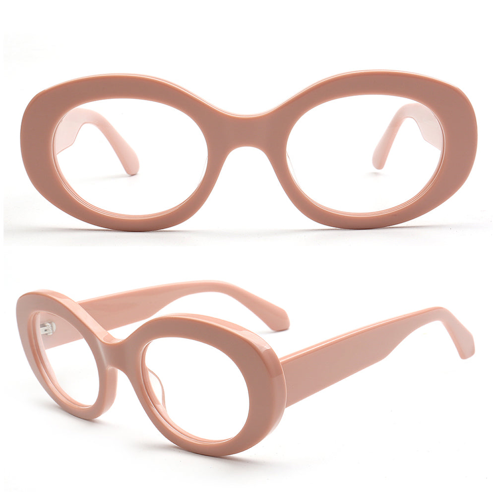 These retro oval eyeglass frames are made of acetate material. Durability is a significant factor when choosing eyeglasses frames, and acetate frames do not disappoint. The material's strength means it can withstand daily wear and tear, reducing the need for frequent replacements. These vintage spectacles come in black, tortoise, white, pink and green color options. The modern oval shape allows these glasses frames to be worn by women of any ages.