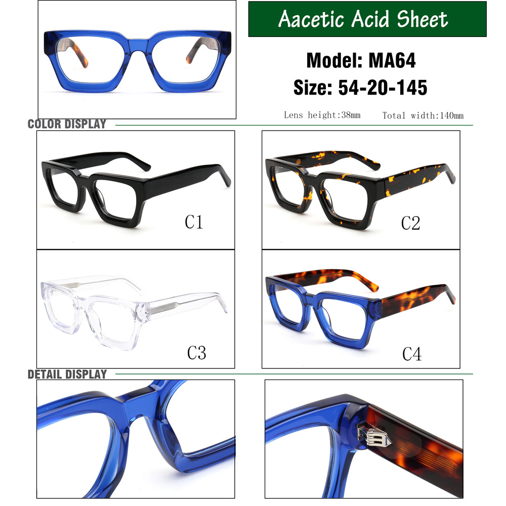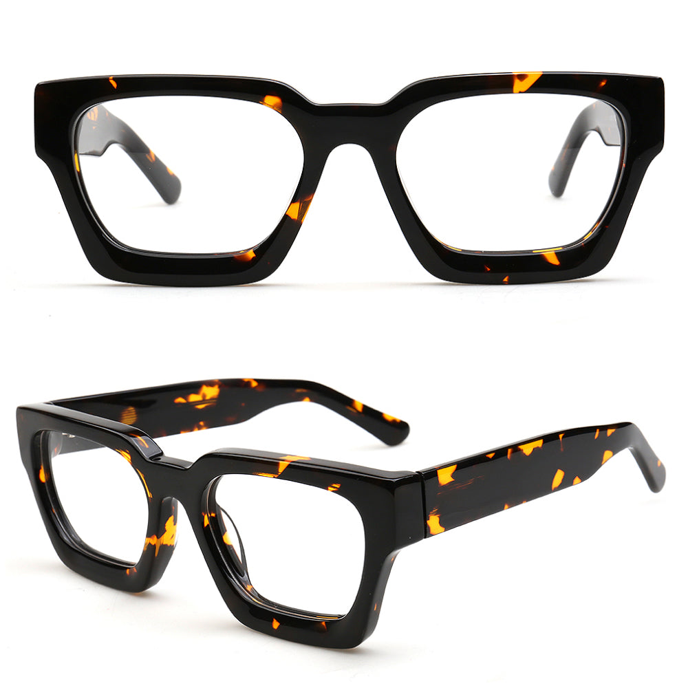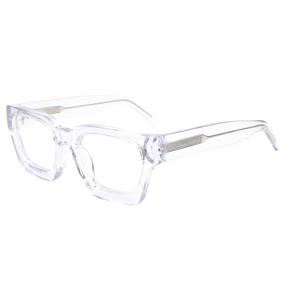 These retro eyeglass frames are made of acetate material. Durability is a significant factor when choosing eyeglasses frames, and acetate frames do not disappoint. The material's strength means it can withstand daily wear and tear, reducing the need for frequent replacements. These bulky spectacles come in black, tortoise, clear and blue/tortoise color options. The old school design allows these glasses frames to be worn by both men and women.