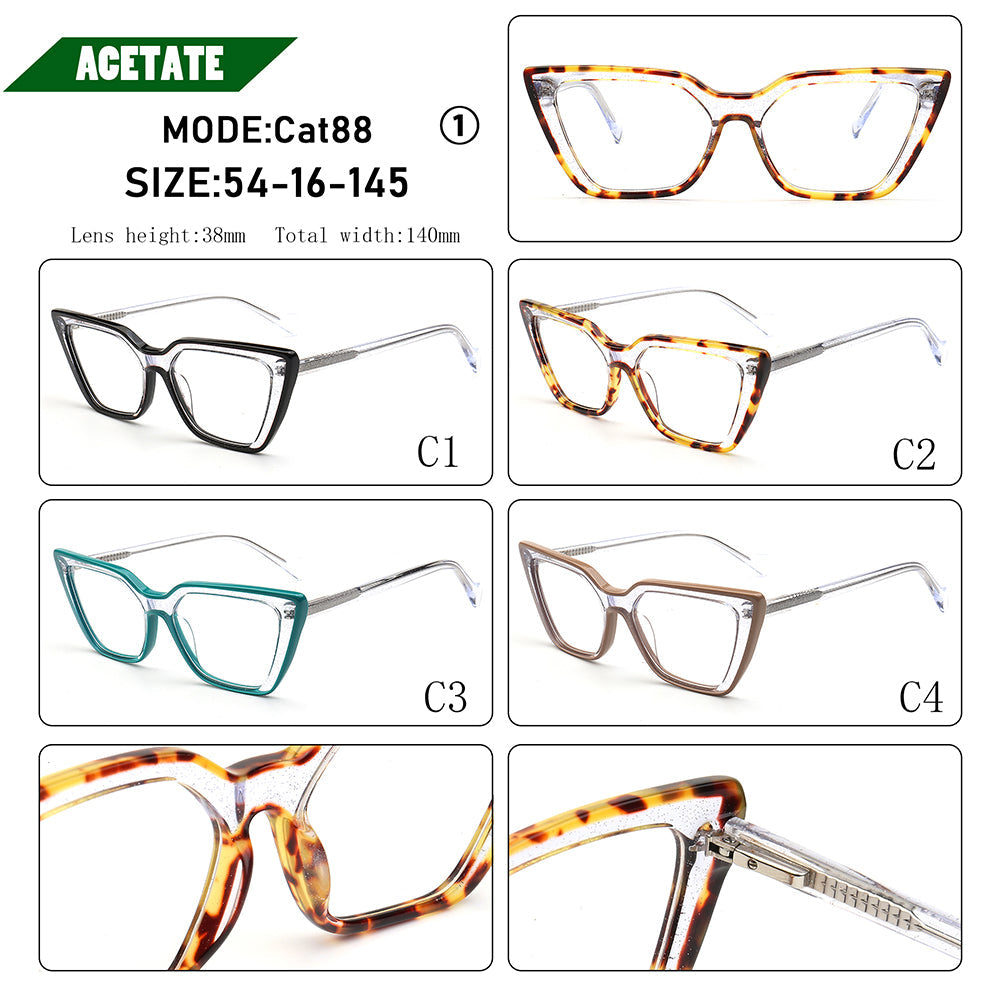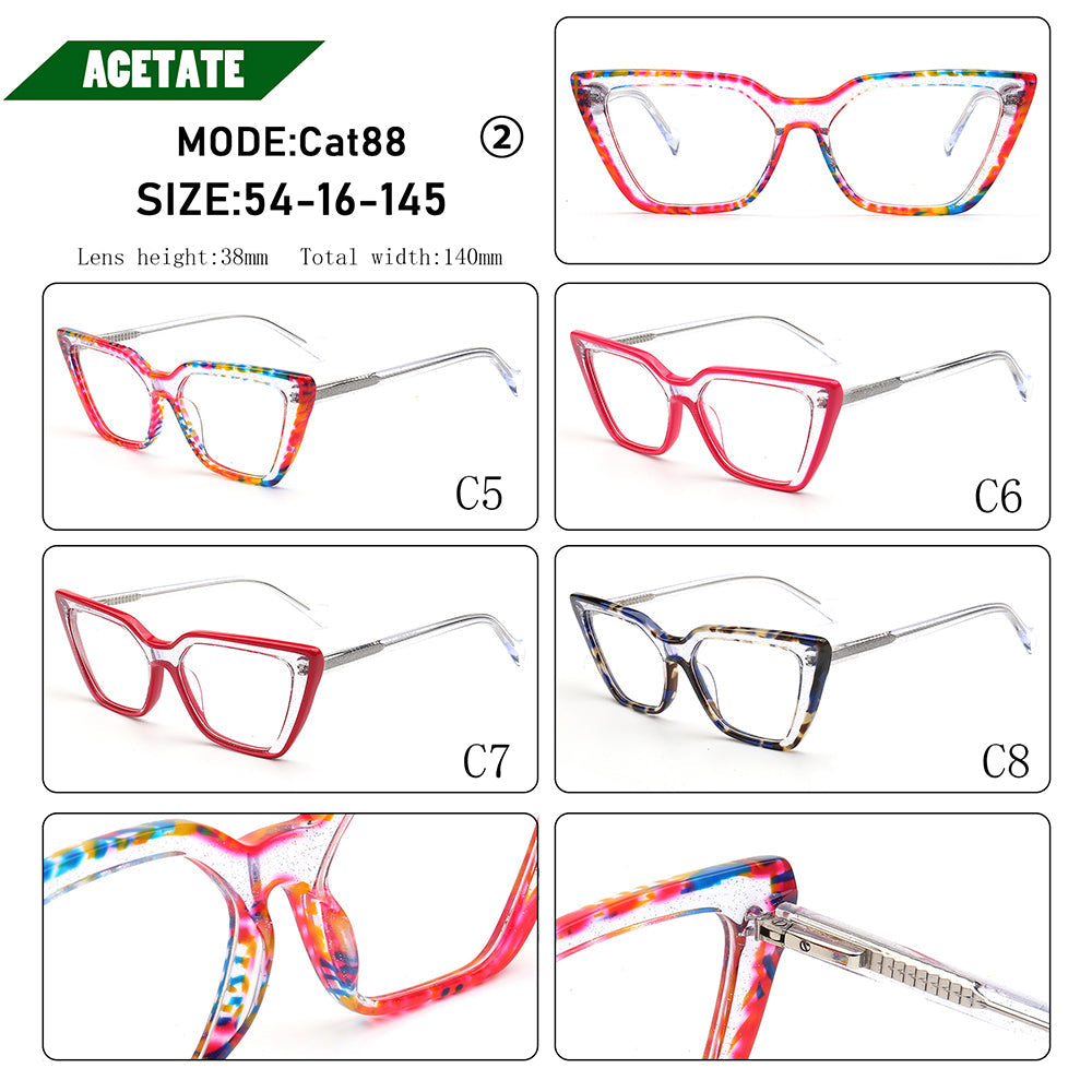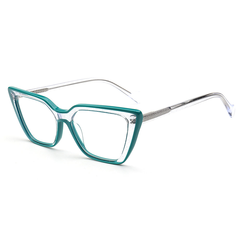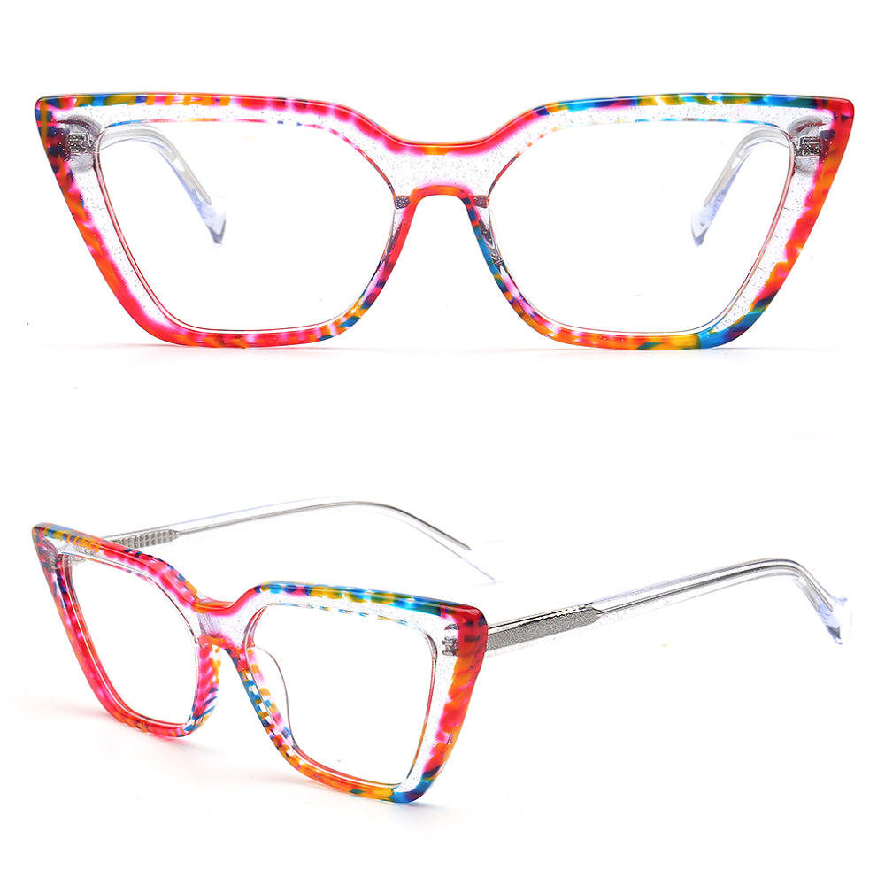 These fashionable cat eye spectacles are made of acetate material. Durability is a significant factor when choosing spectacles, and acetate frames do not disappoint. The material's strength means it can withstand daily wear and tear, reducing the need for frequent replacements. These chic eyeglasses frames come in transparent with black, tortoise shell, green, brown, multicolor, bright red, dark red and dark tortoise color options. The trendy crystal design allows these eyeglass frames to be worn by women of any ages.