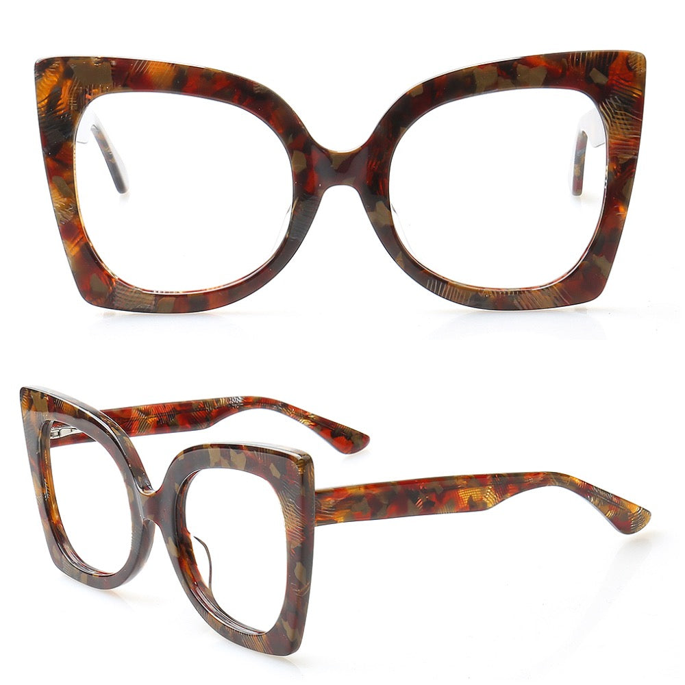 These patterned eyeglasses are made of acetate material. They come in black, amber, clear, multicolor, and blue tortoise shell color options. The oversized design makes these most suitable for women.