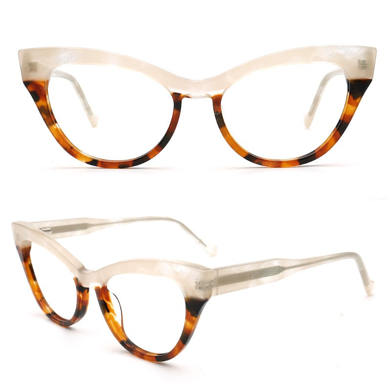 Elva | Funky Womens Cat Eye Tortoise Glasses Two Tone | Vintage Retro Female Optical Eyeglasses Frames