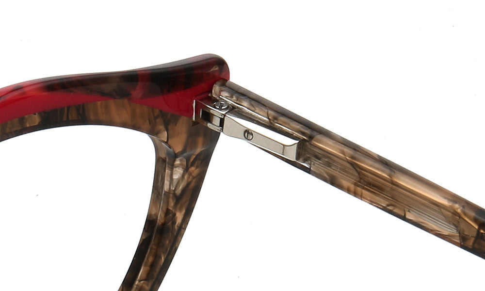 These trendy cat eye eyeglasses are made of acetate material. They come in red/green, green/purple, leopard print/red and purple/blue color options with patterned designs. The fashionable and stylish design allows these glasses to be worn by women of any age.