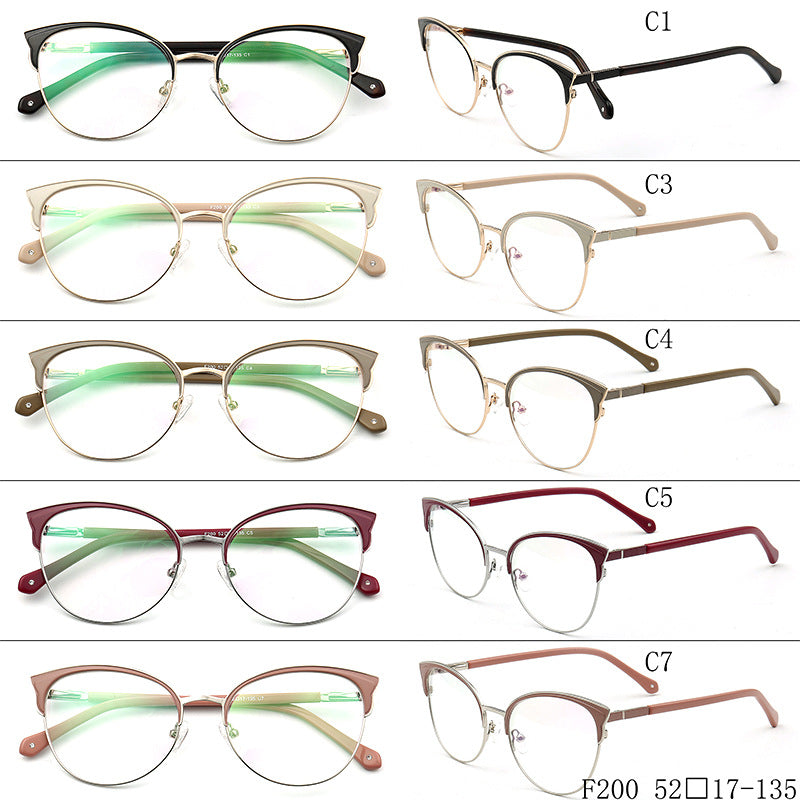 These semi rimless eyeglasses are made of durable stainless steel material. They come in black, beige, brown, wine, and rose pink color options. The trendy cat eye design makes these most suitable for women.
