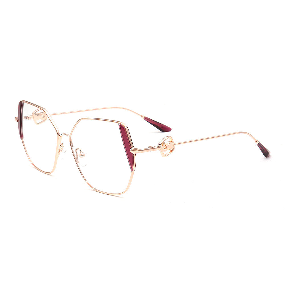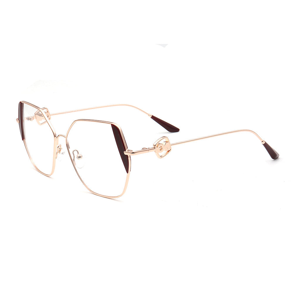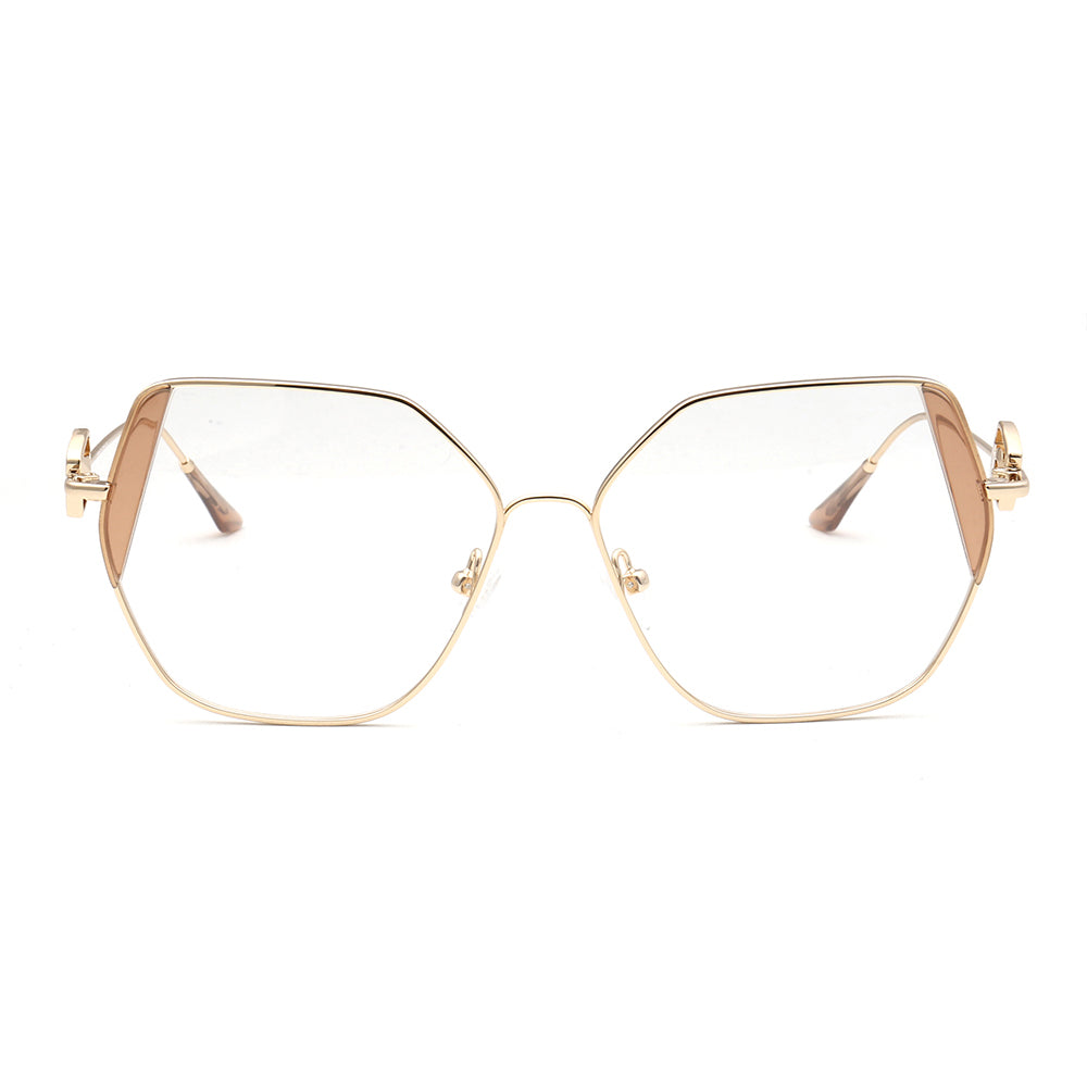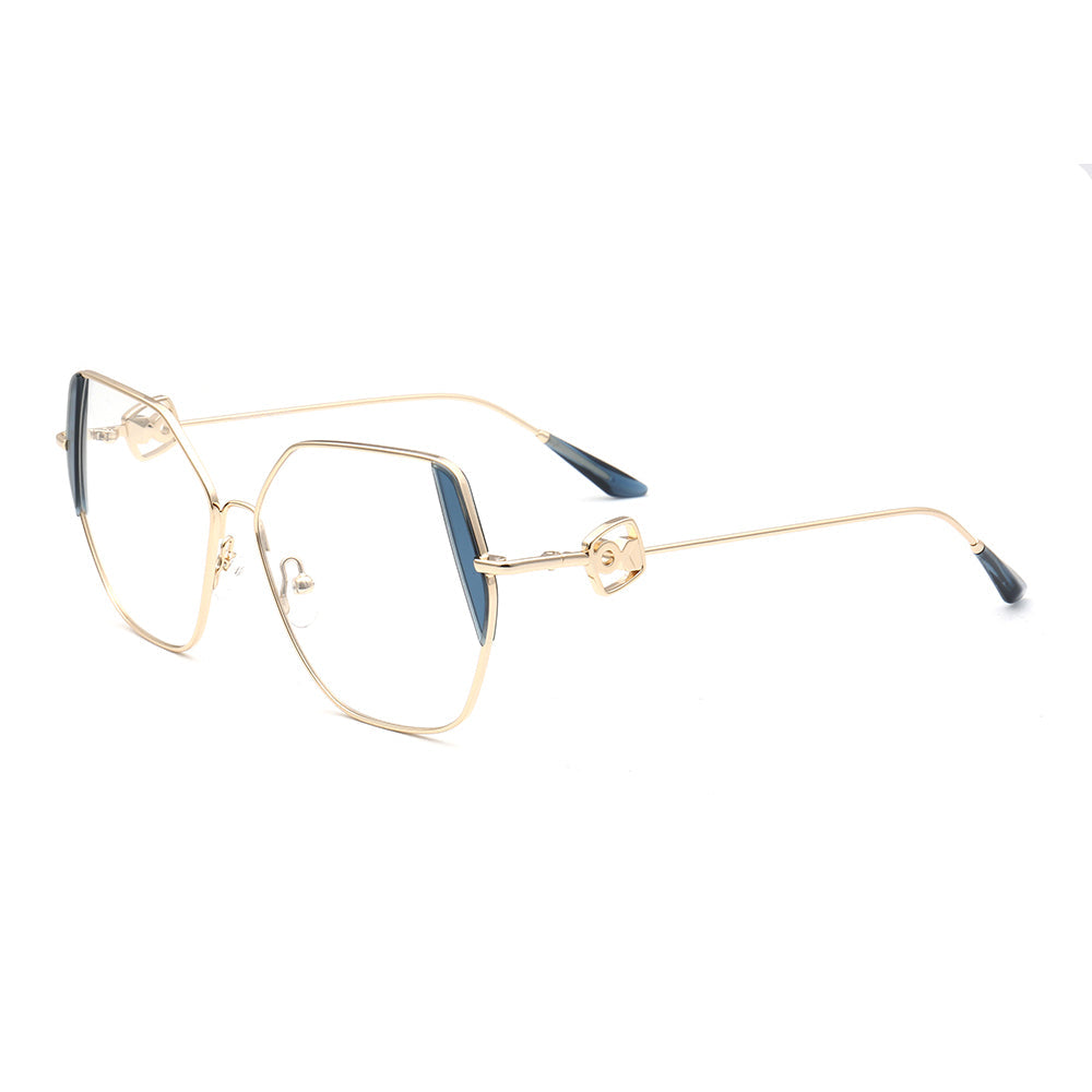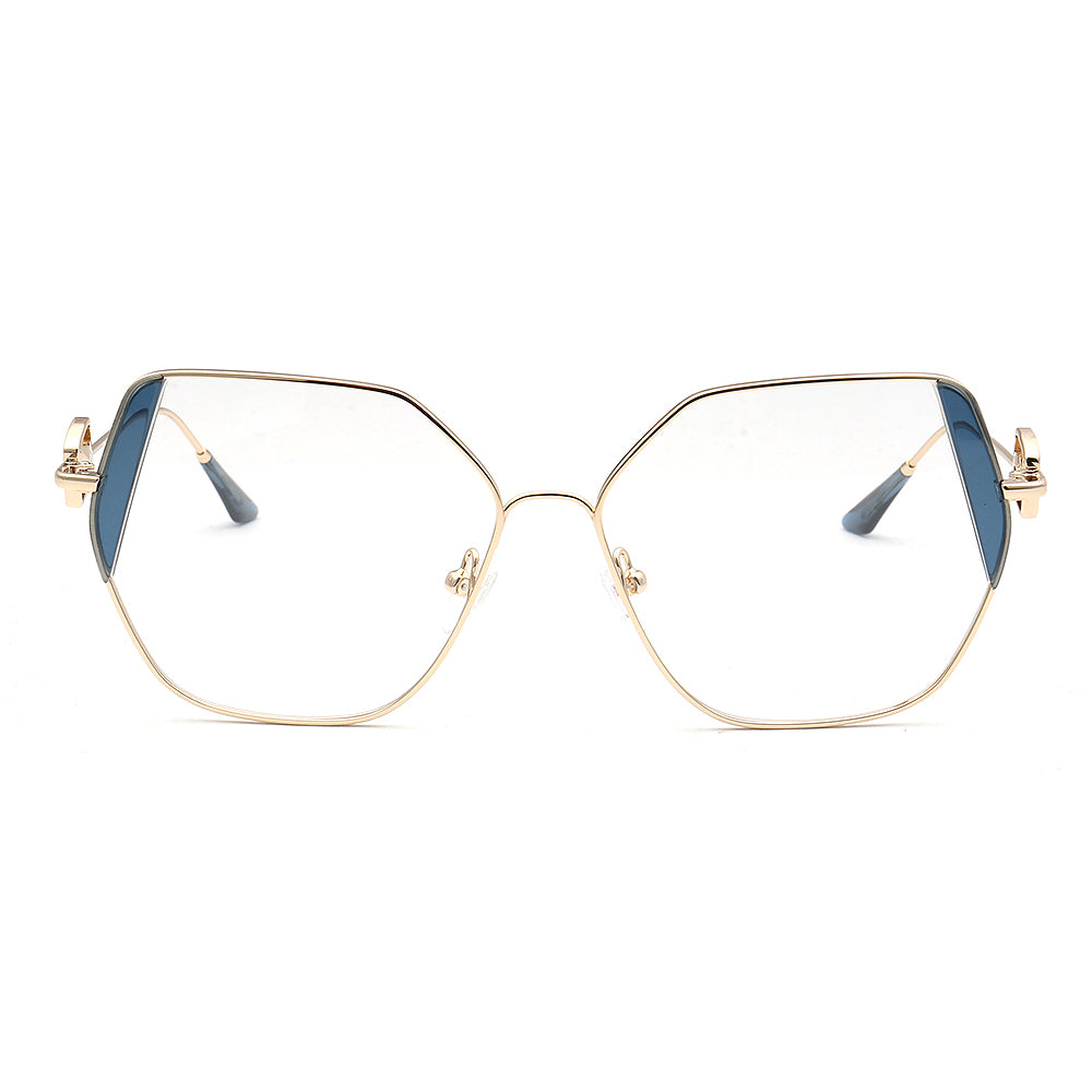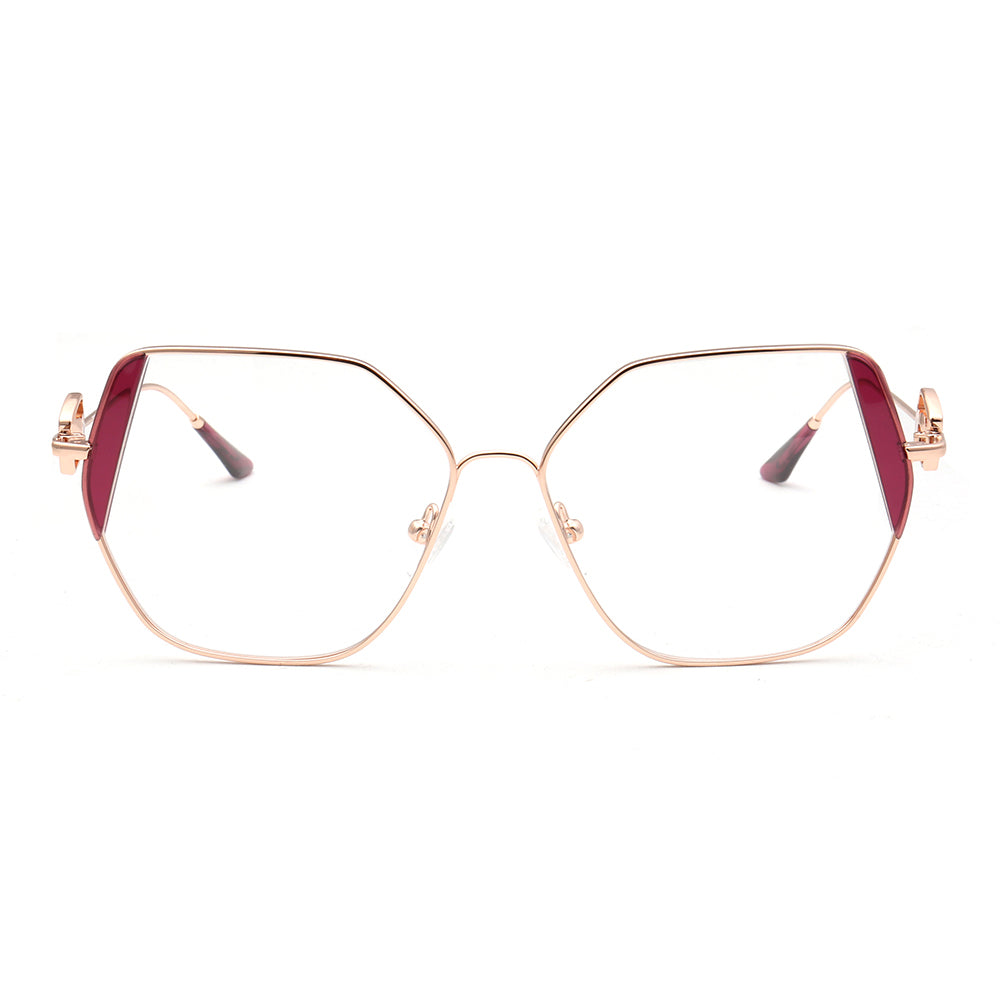 These trendy eyeglasses frames are made of metal material, which is very lightweight. The spectacles come in flesh, green, brown, black, red, tea, blue and teal color options with gold frames. The stylish geometric and oversized frame design allows these eyewear frames to be worn by women of any age.