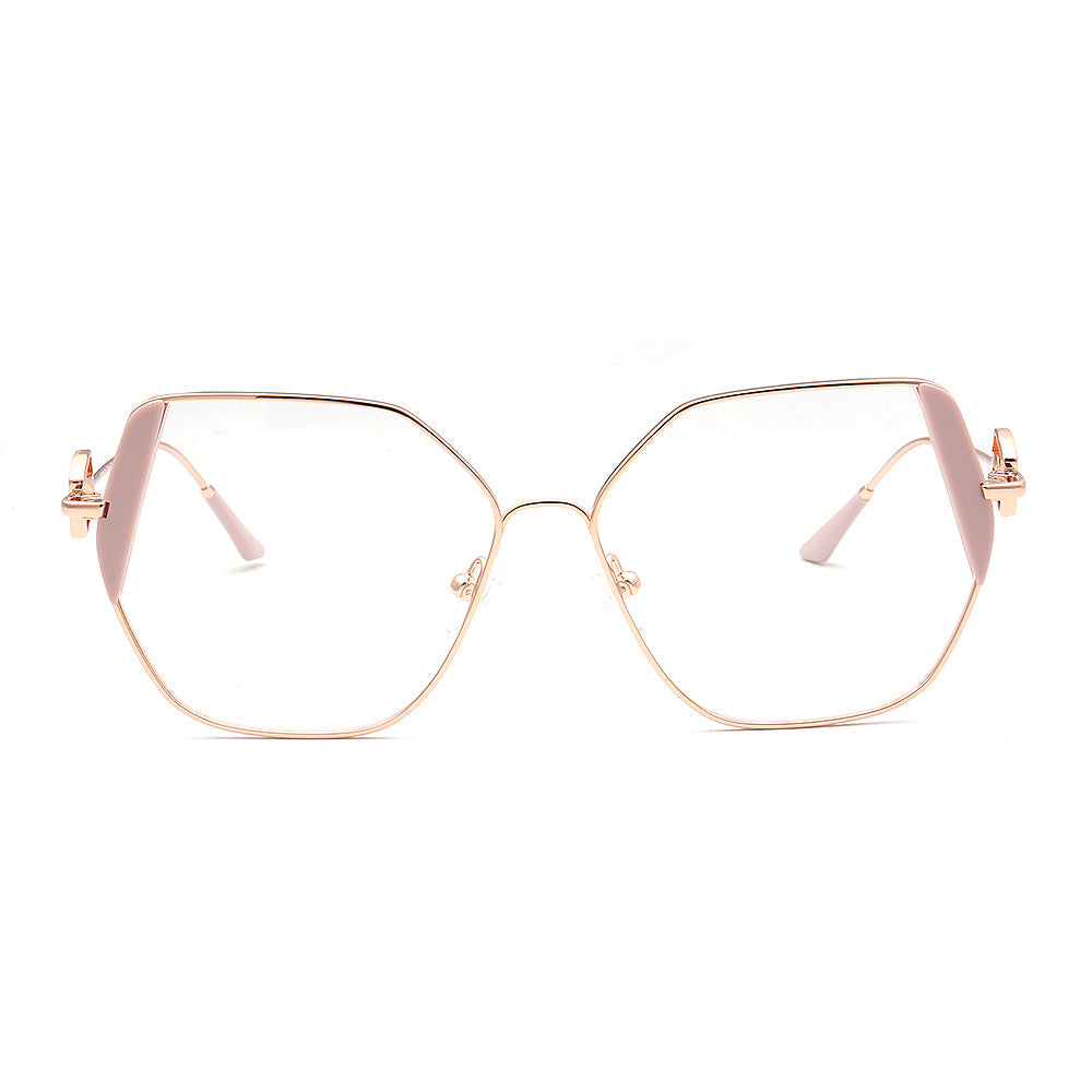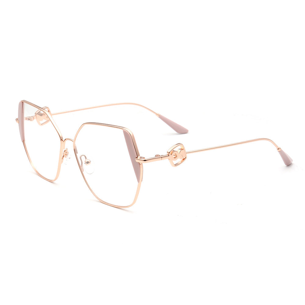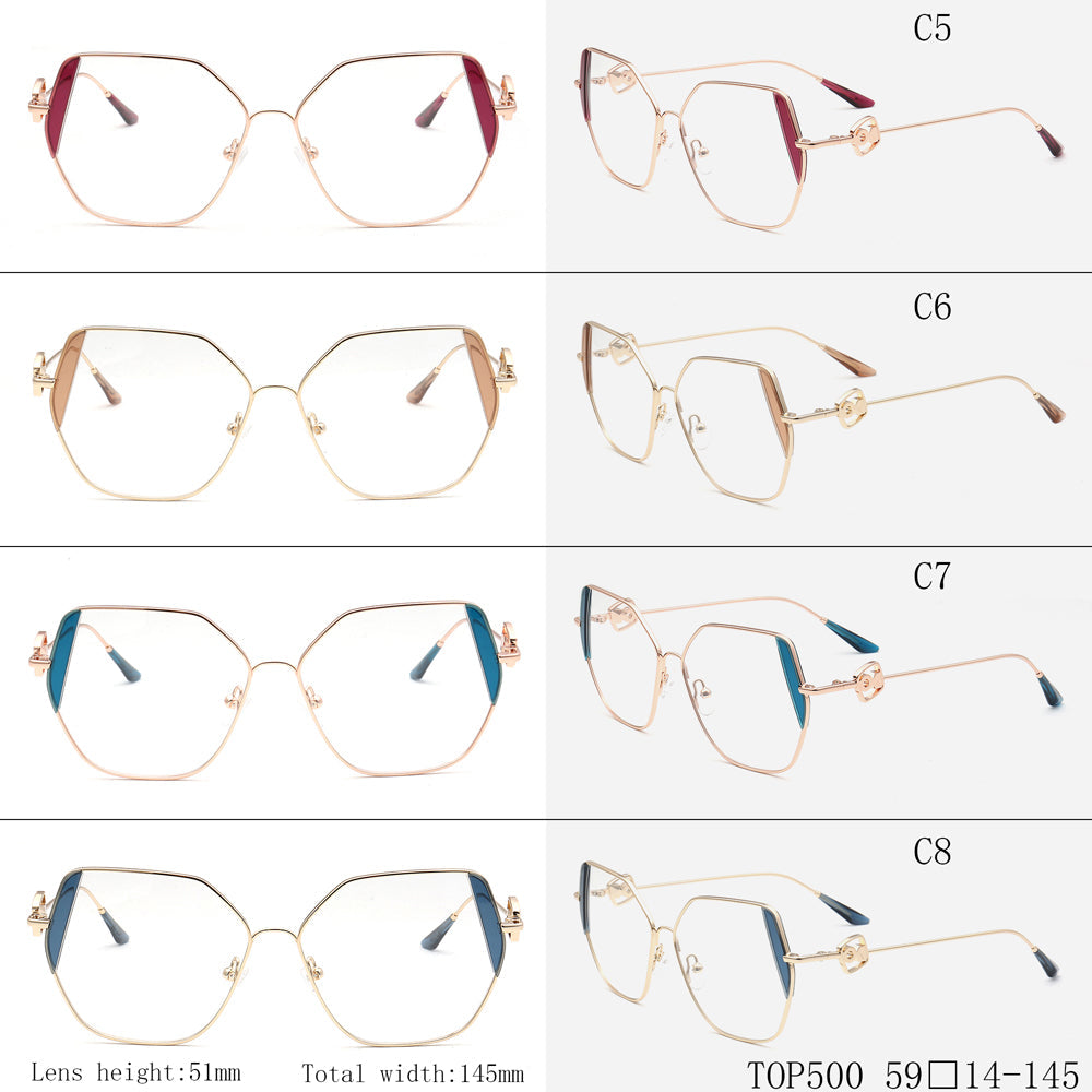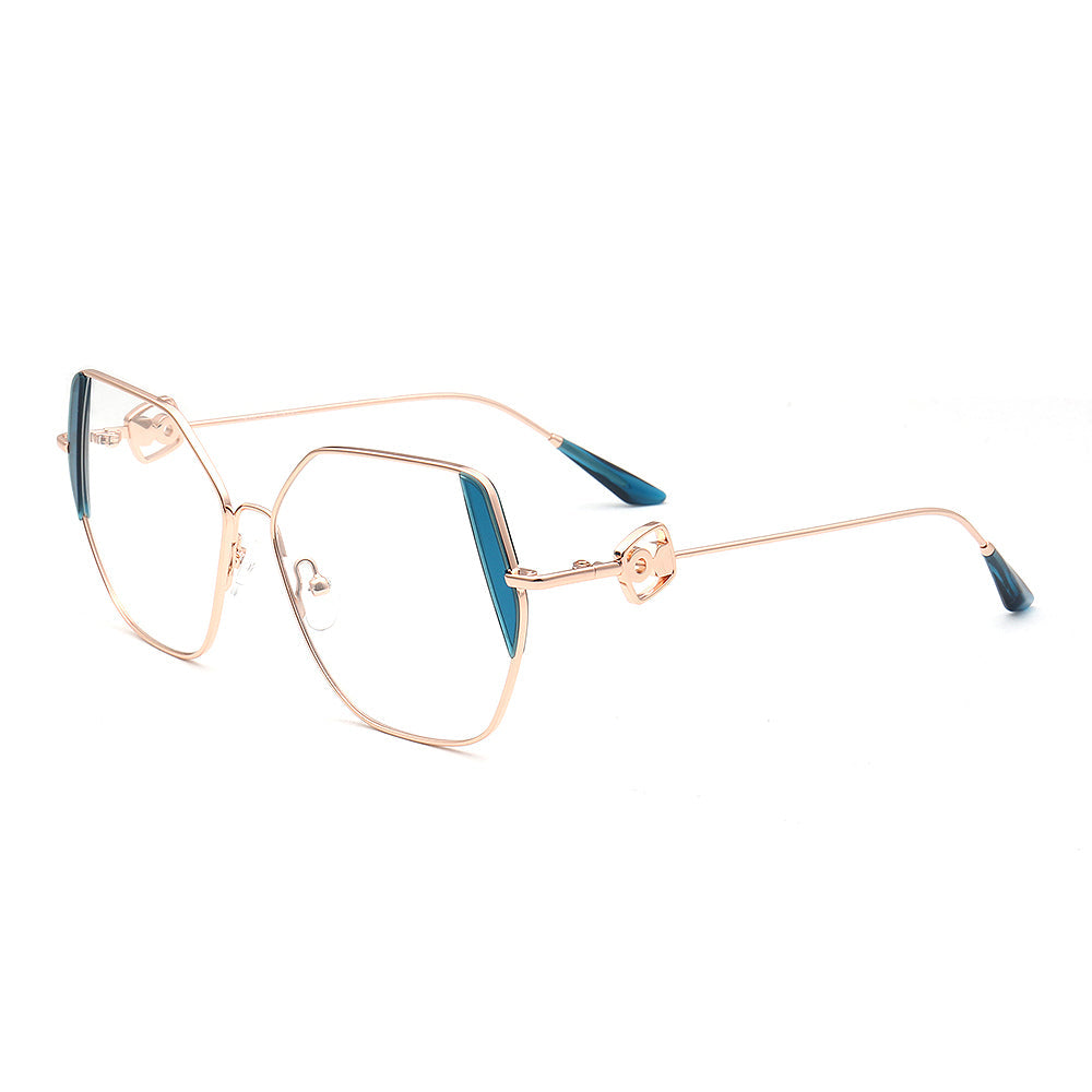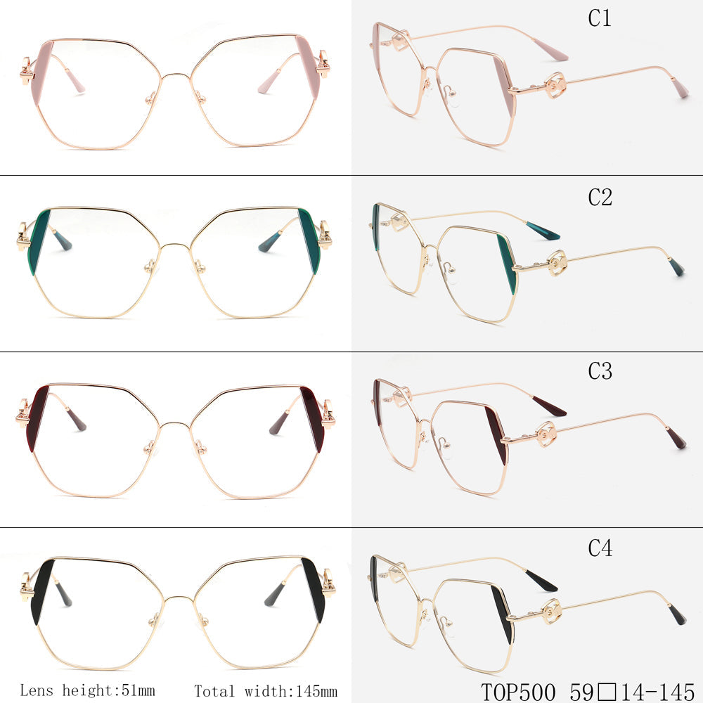 These trendy eyeglasses frames are made of metal material, which is very lightweight. The spectacles come in flesh, green, brown, black, red, tea, blue and teal color options with gold frames. The stylish geometric and oversized frame design allows these eyewear frames to be worn by women of any age.