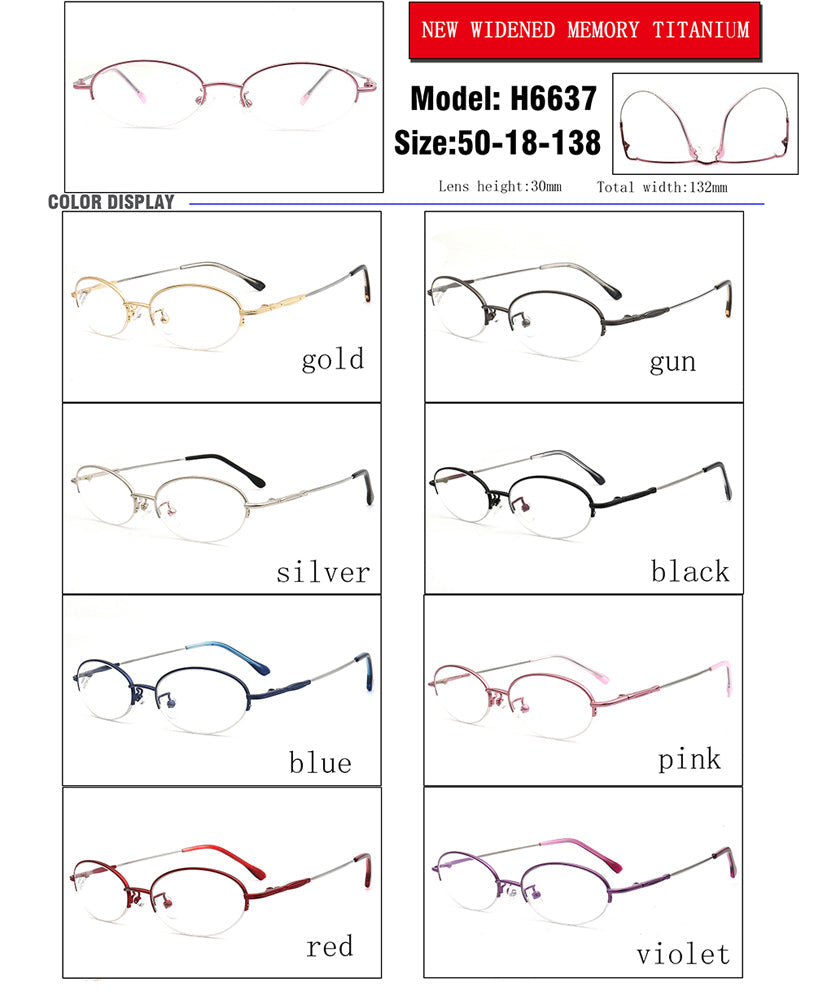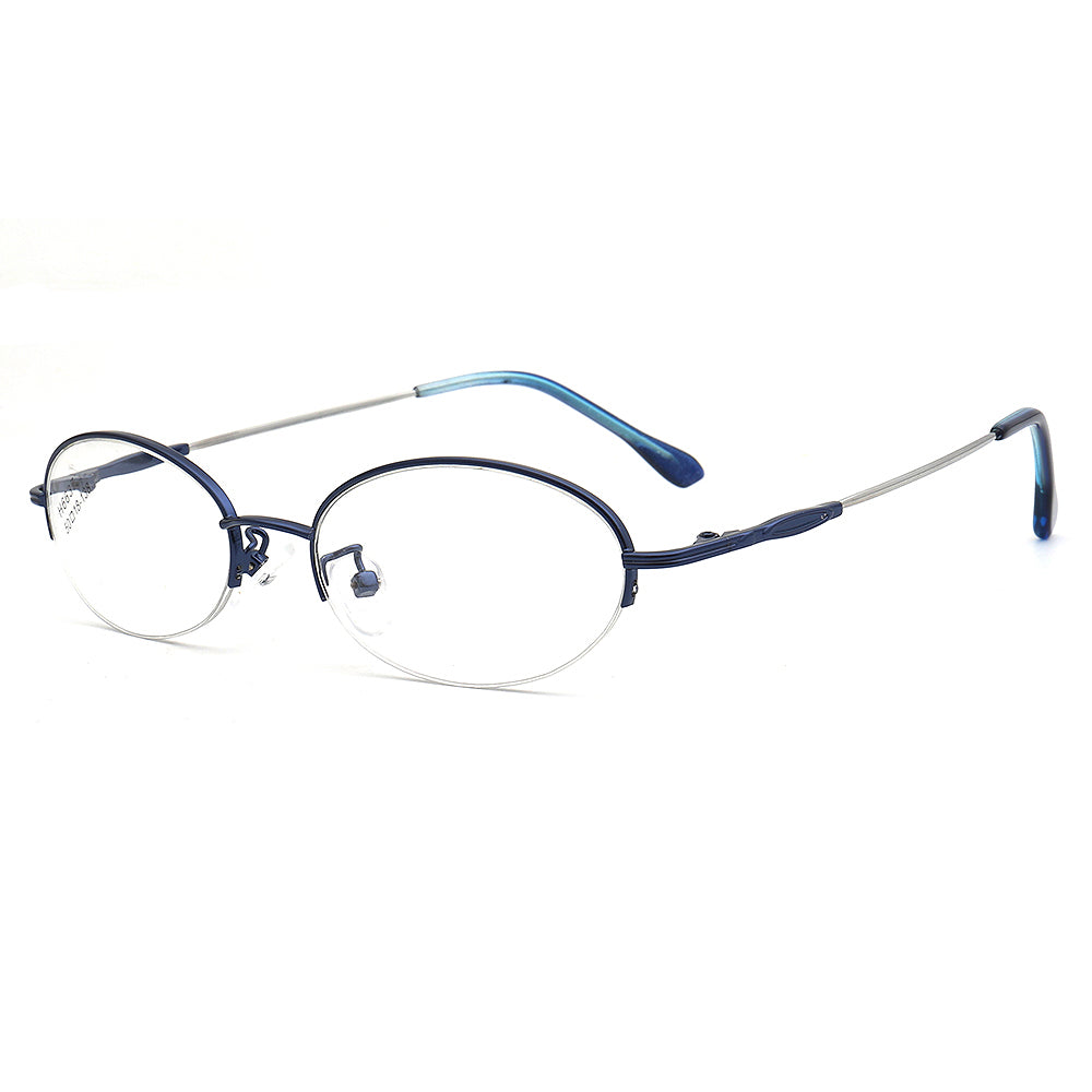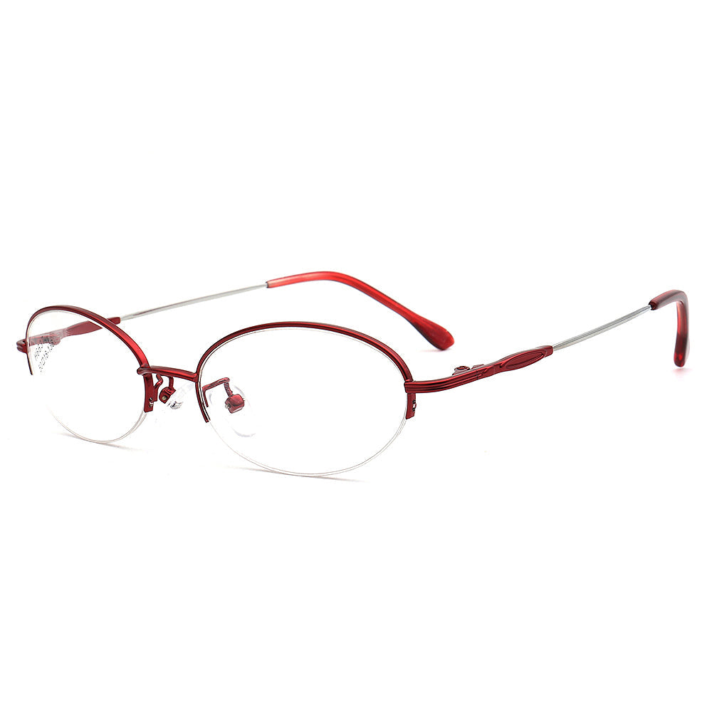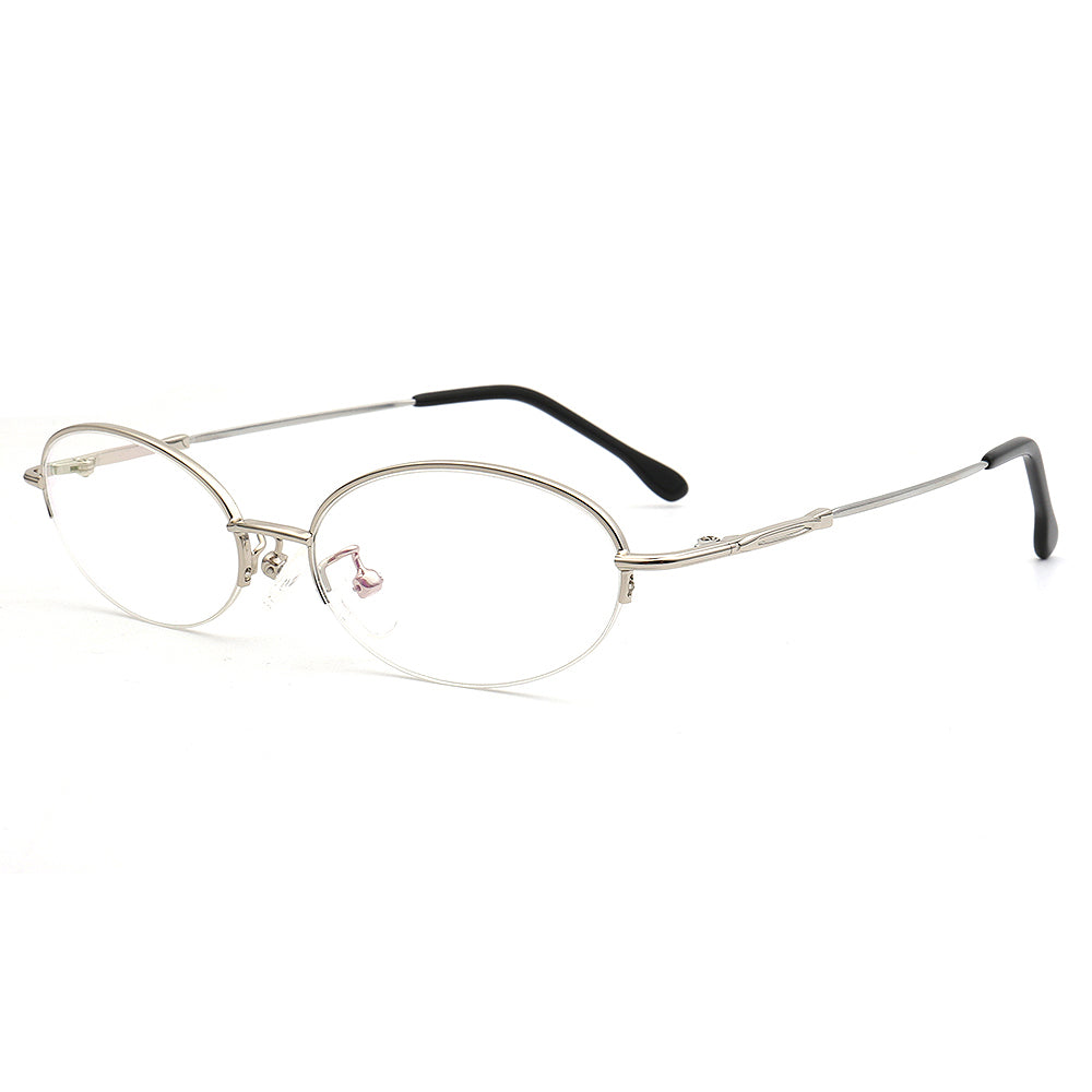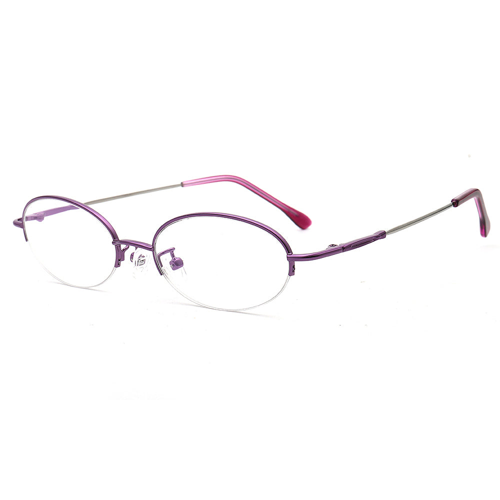 These trendy semi rimless eyeglasses are made of bendable memory metal material, which is very lightweight. They come in black, gunmetal, gold, silver, purple, blue, pink, red and violet color options. The classic oval shape allows these glasses to be worn by women of any age.