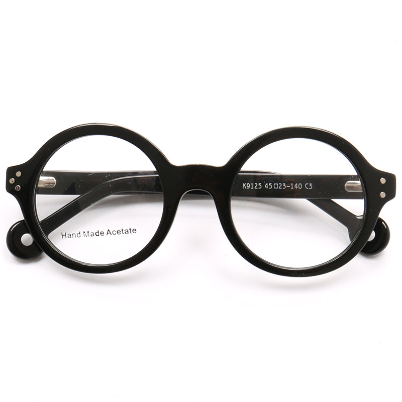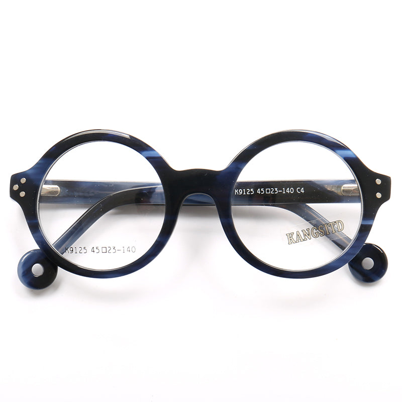 These round eyeglasses are made of acetate material. They come in red, amber, black, blue, light brown, and grey color options. The unisex design allows these glasses to be worn by both men and women.