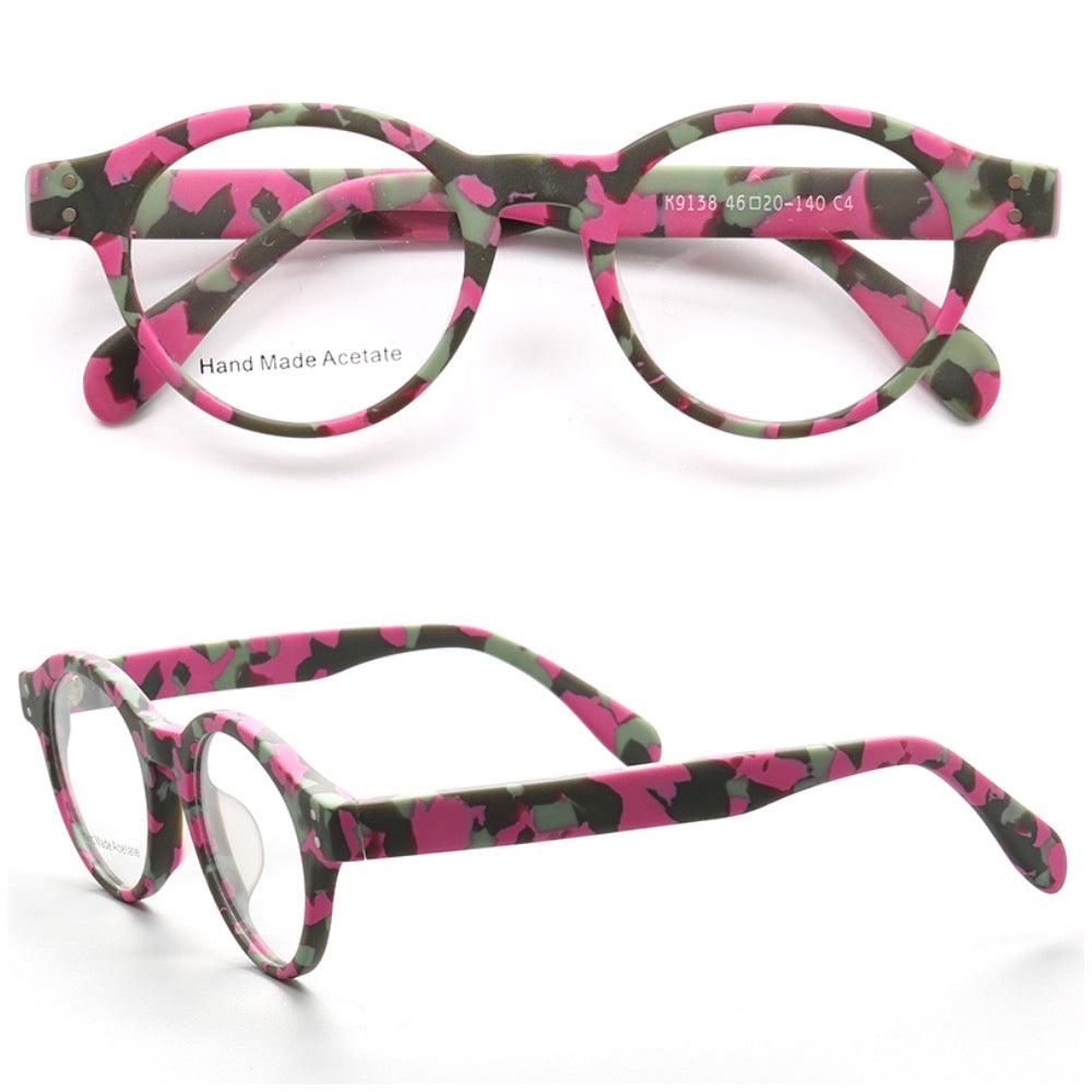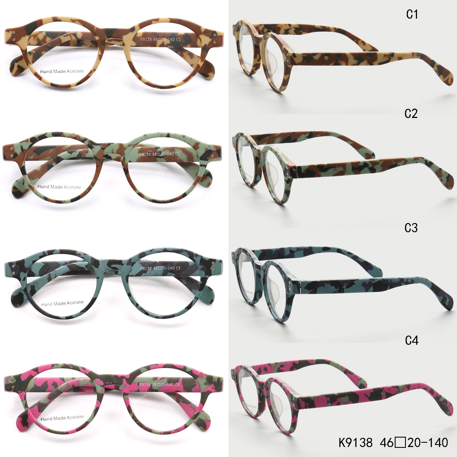 These camouflage eyeglasses are made of acetate material. They come in brown, camo, blue, pink, black, and multicolor color options. The unisex design allows these glasses to be worn by both men and women.