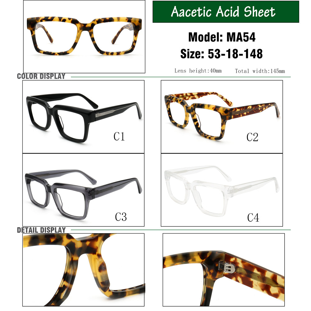 These vintage eyeglasses are made of acetate material. The bulky eyewear frames come in black, leopard print, grey and clear/transparent color options. The classic square design allows these glasses frames to be worn by both men and women.