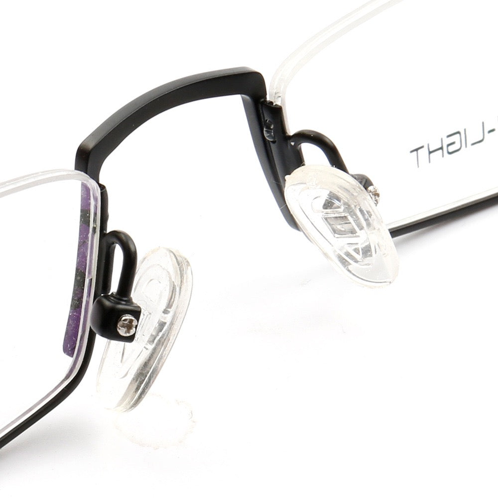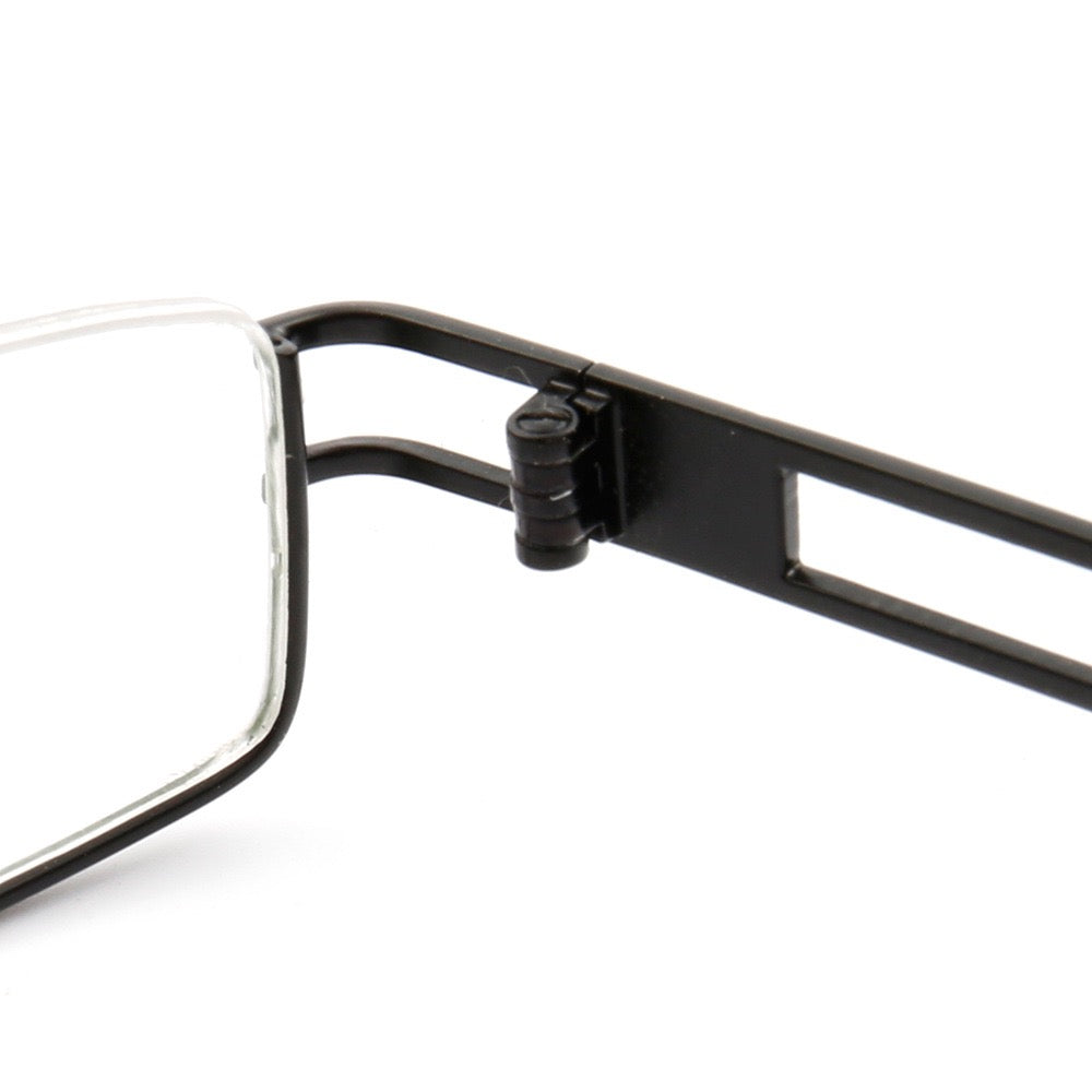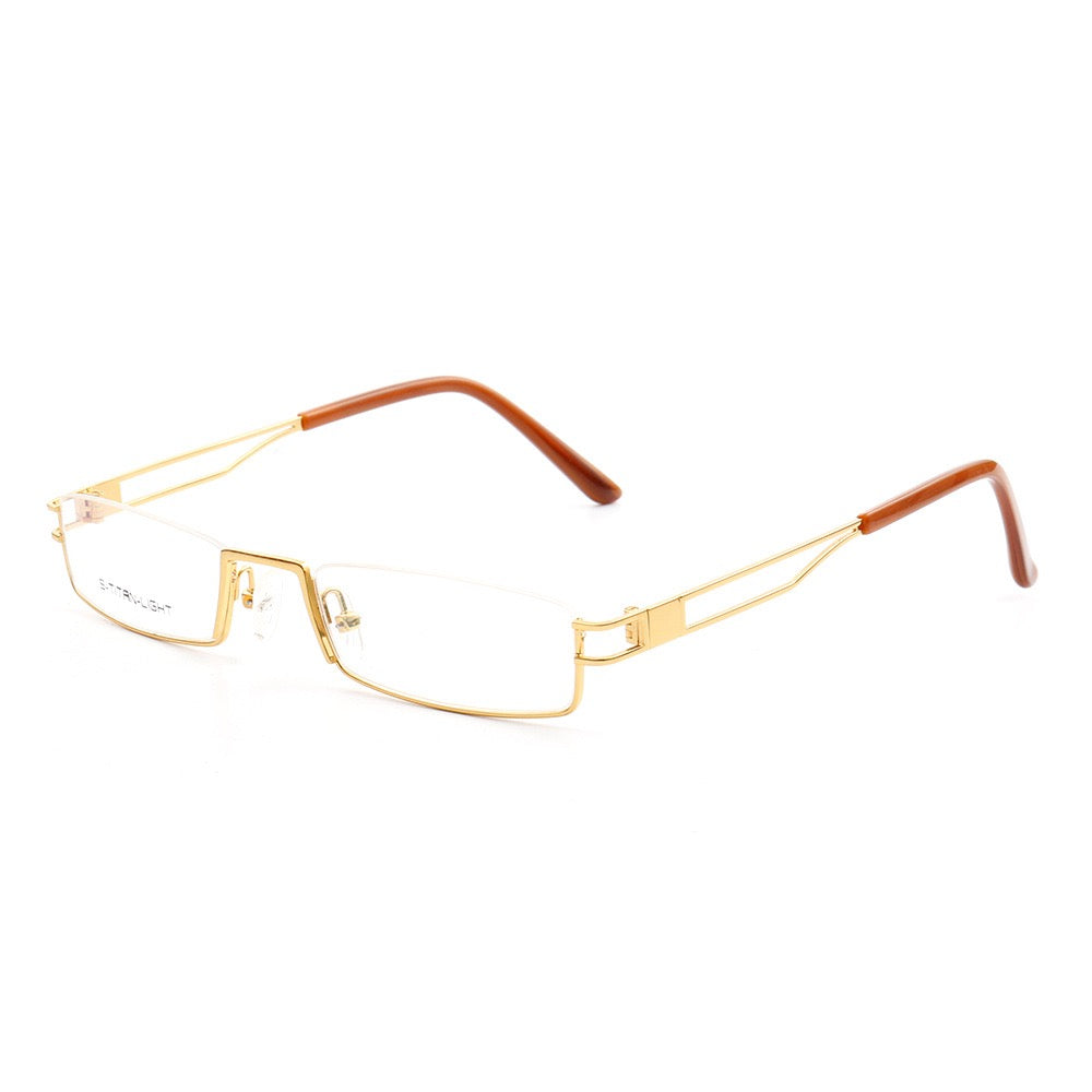 These lightweight half rim eyeglass frames are made of metal material with rectangle shape. They come in black, silver, gold, gunmetal, and coffee color options. The classic semi rimless design allows these eyewear frames to be worn by both men and women of any ages. These square spectacles are suitable for casual wear.