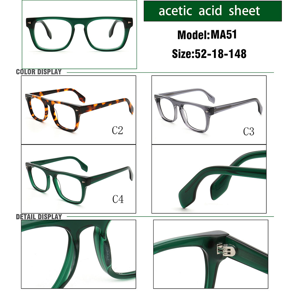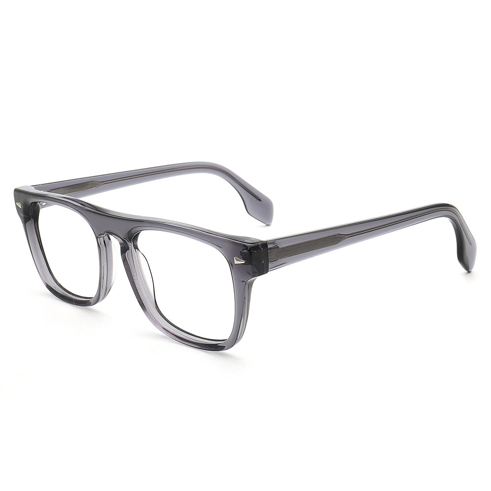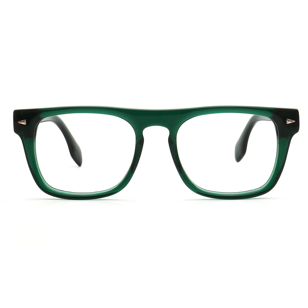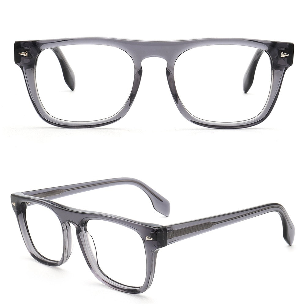 These square oversized eyeglasses are made of acetate material. They come in tortoise, grey and green color options. The fashionable design allows these glasses to be worn by both men and women.