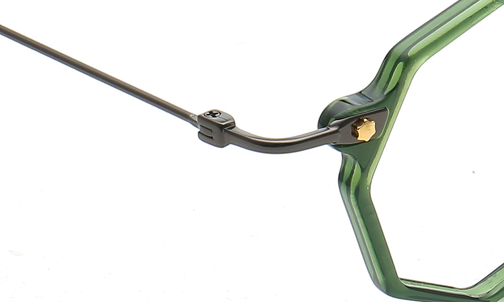 These round geometric eyeglasses are made of acetate and metal material. They come in black, leopard print, white, amber, and green color options. The unisex design allows these glasses to be worn by both men and women.