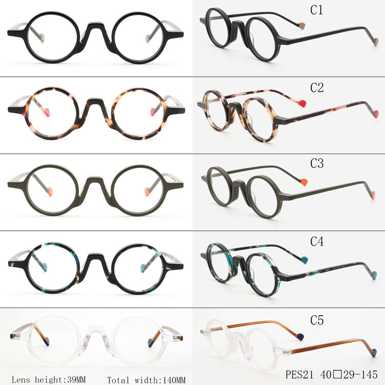 These vintage round eyeglasses are made of acetate material. They come in black, tortoise, blue tortoise, dark and clear color options. The unisex design allows these glasses to be worn by both men and women.