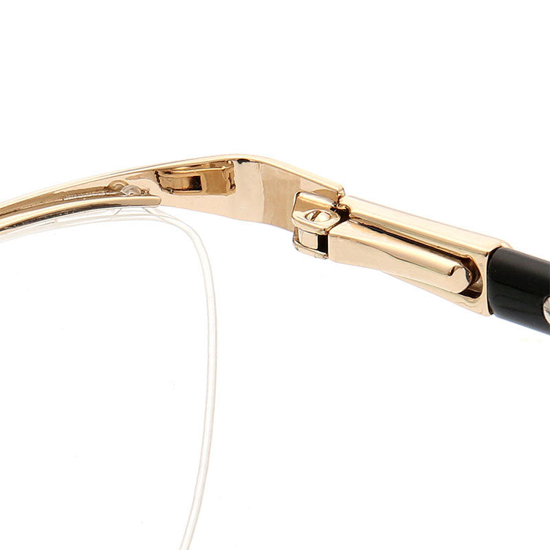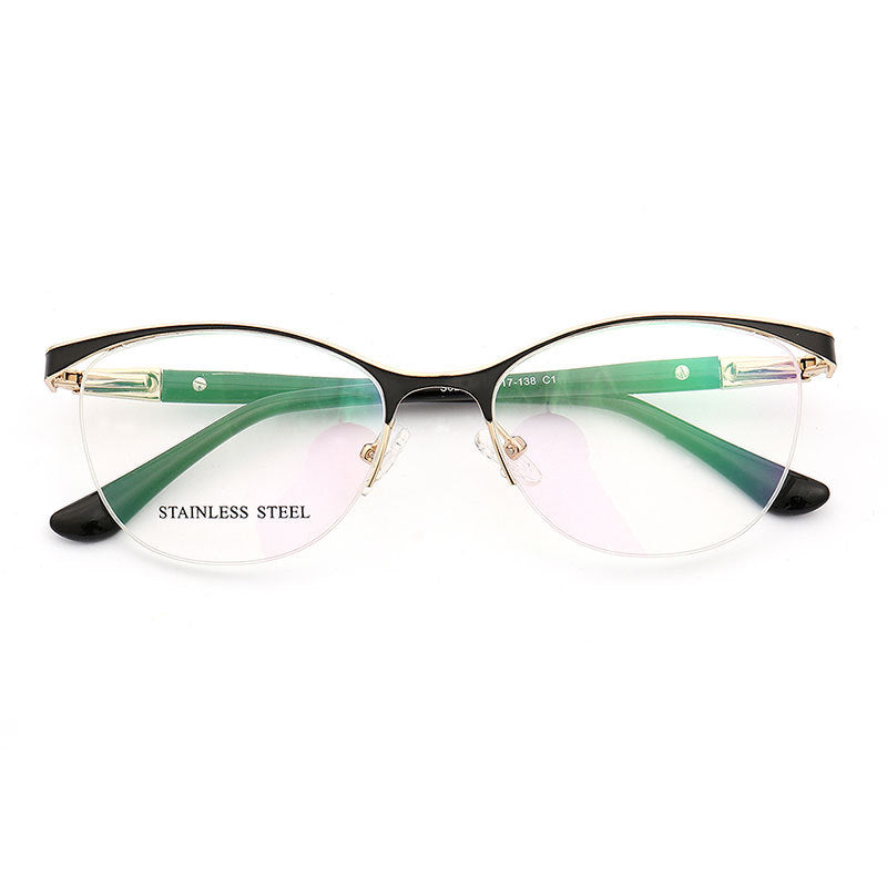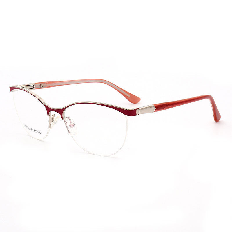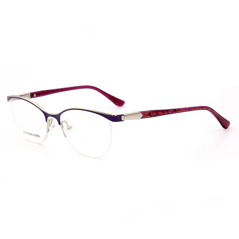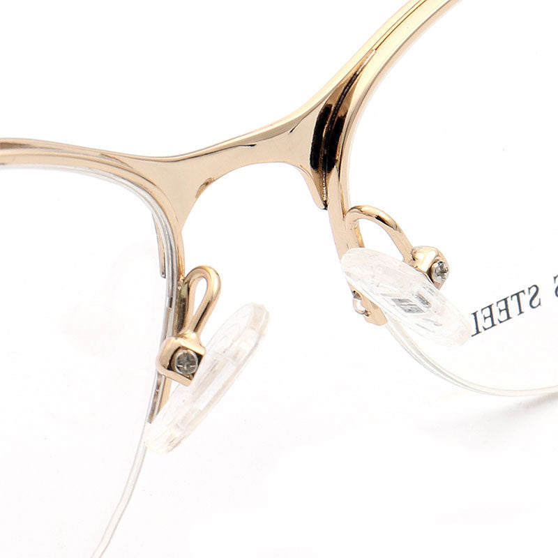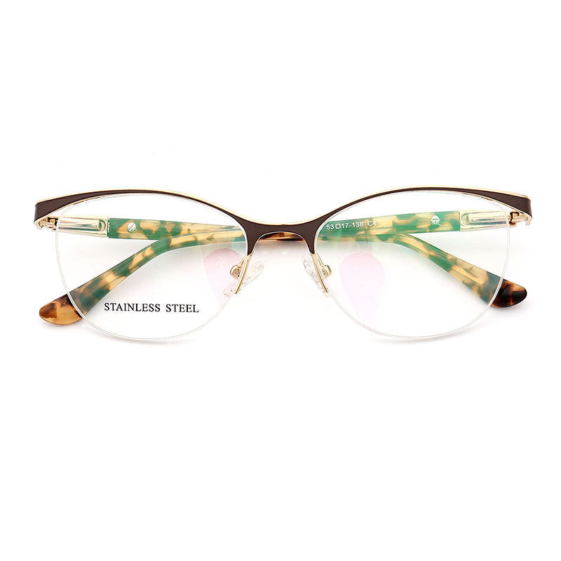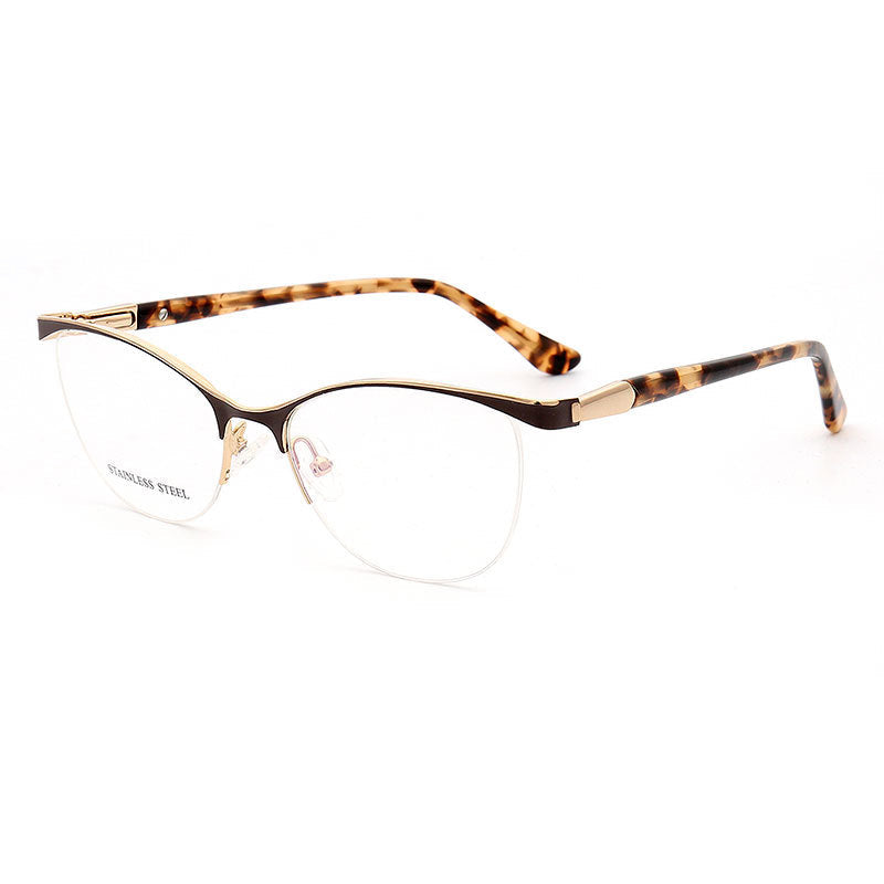 Regina | Half Rim Stainless Steel Eyeglasses For Women | Modern Frame w/ Patterned Temple