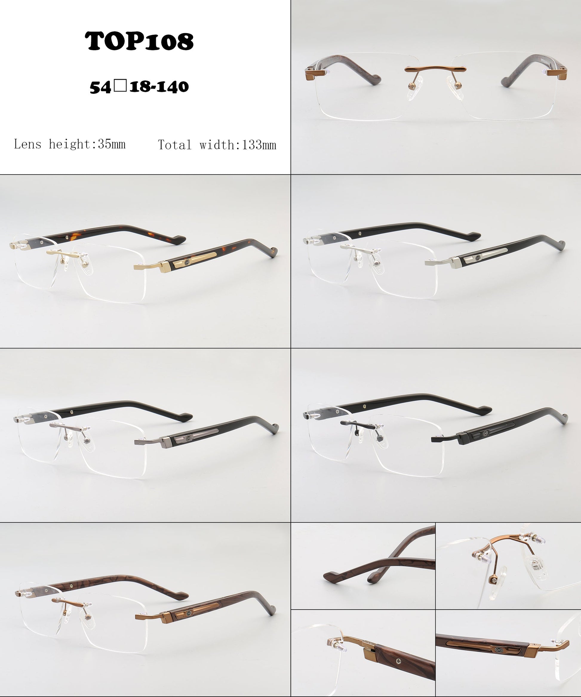 These modern rimless eyeglasses are made of metal material. They come in black, silver, gold, gunmetal, and brown color options. The classic square design allows these glasses to be worn by both men and women.