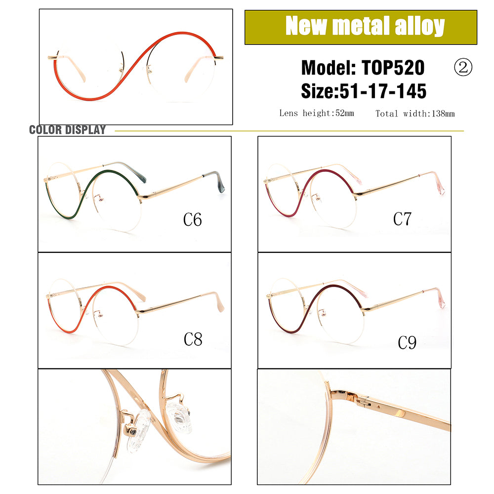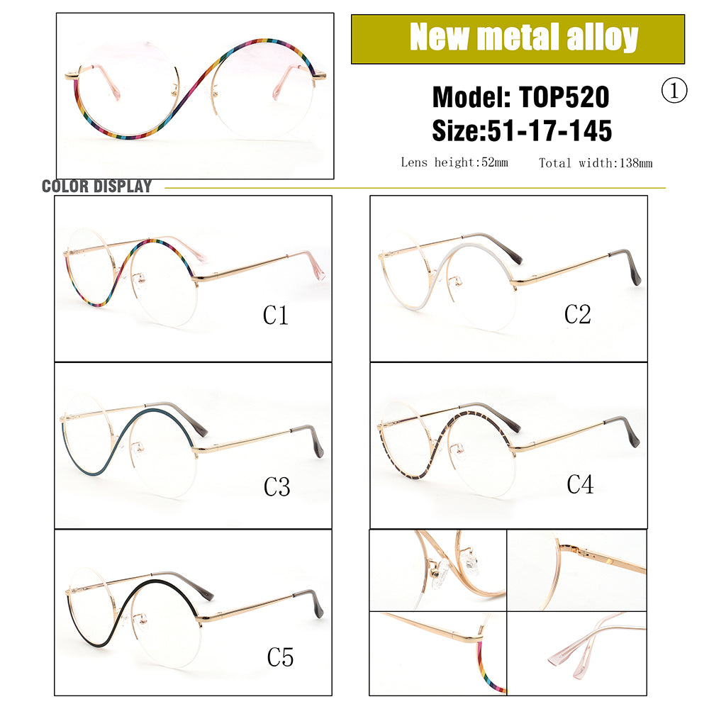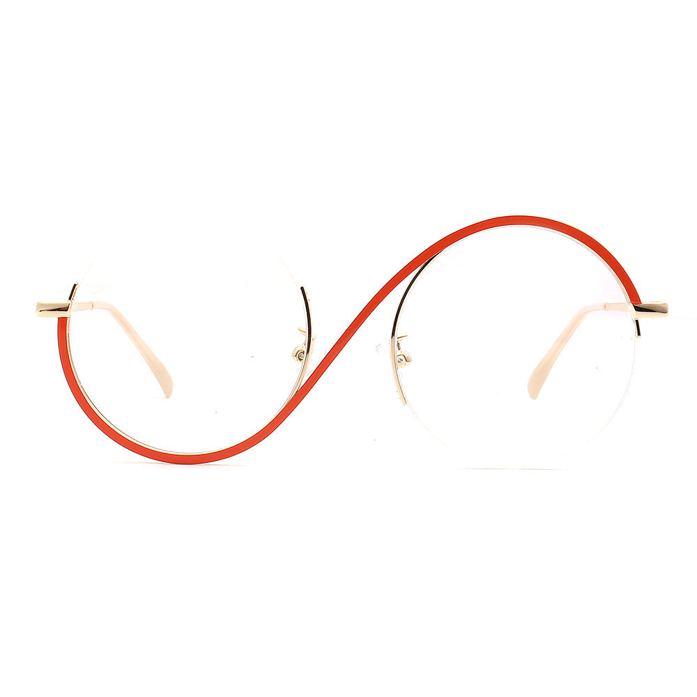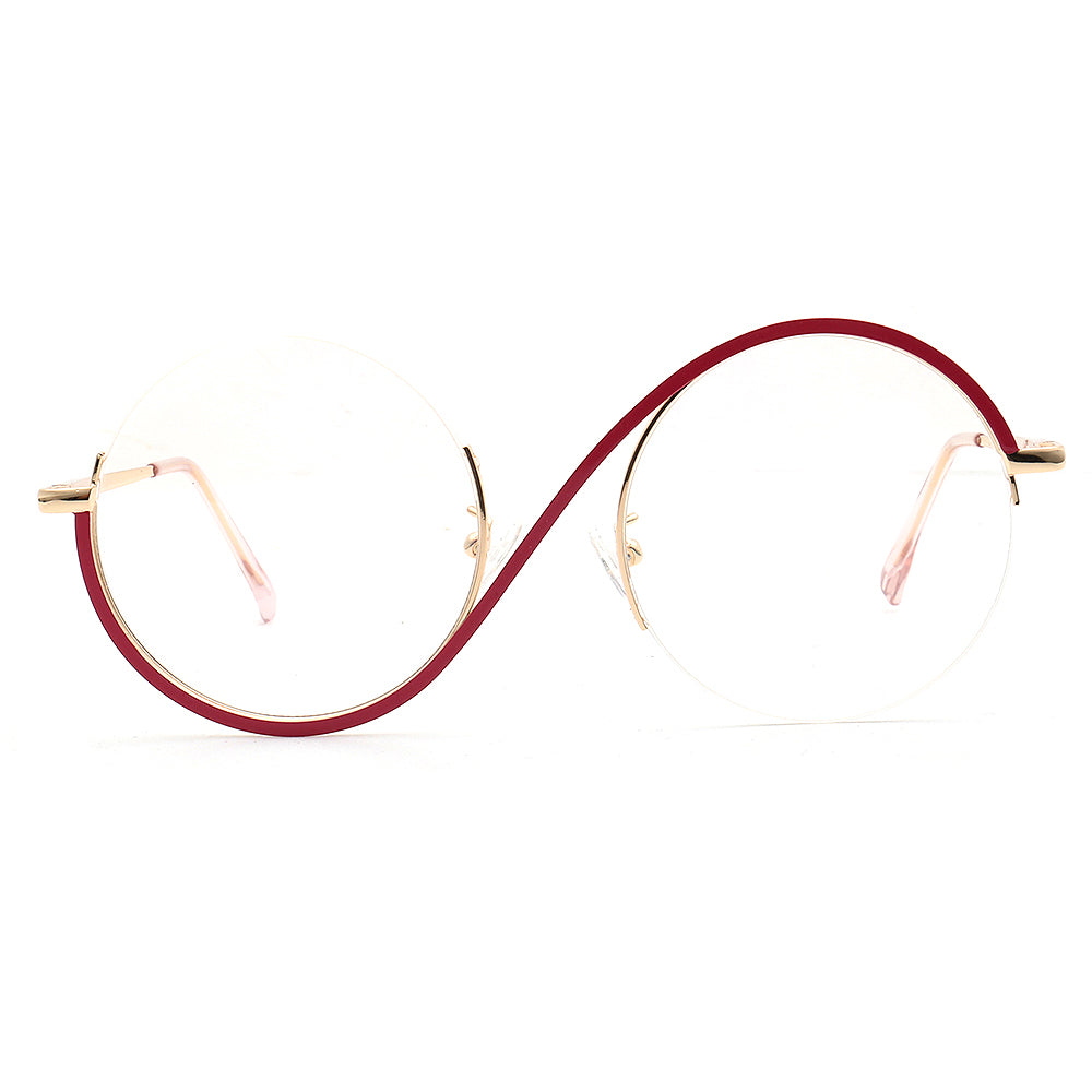 These round modern eyeglasses are made of metal material. The special half rim and rainbow design allows these glasses to be worn by women of any age.